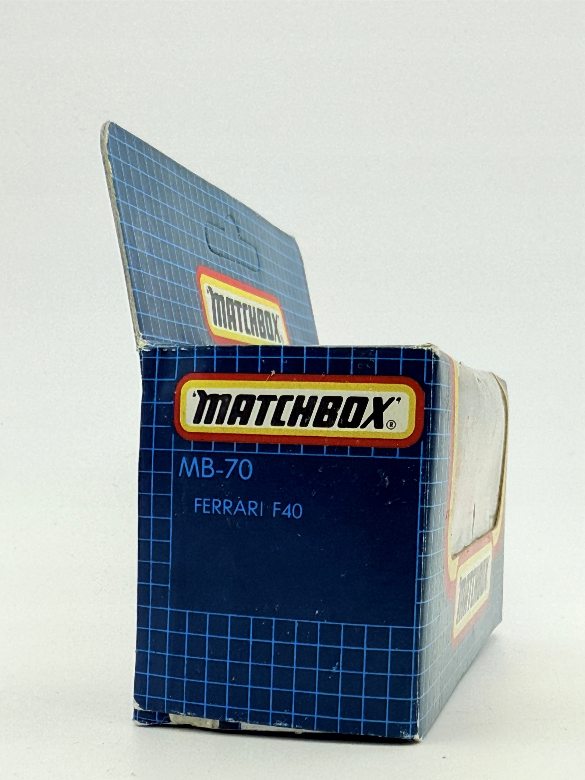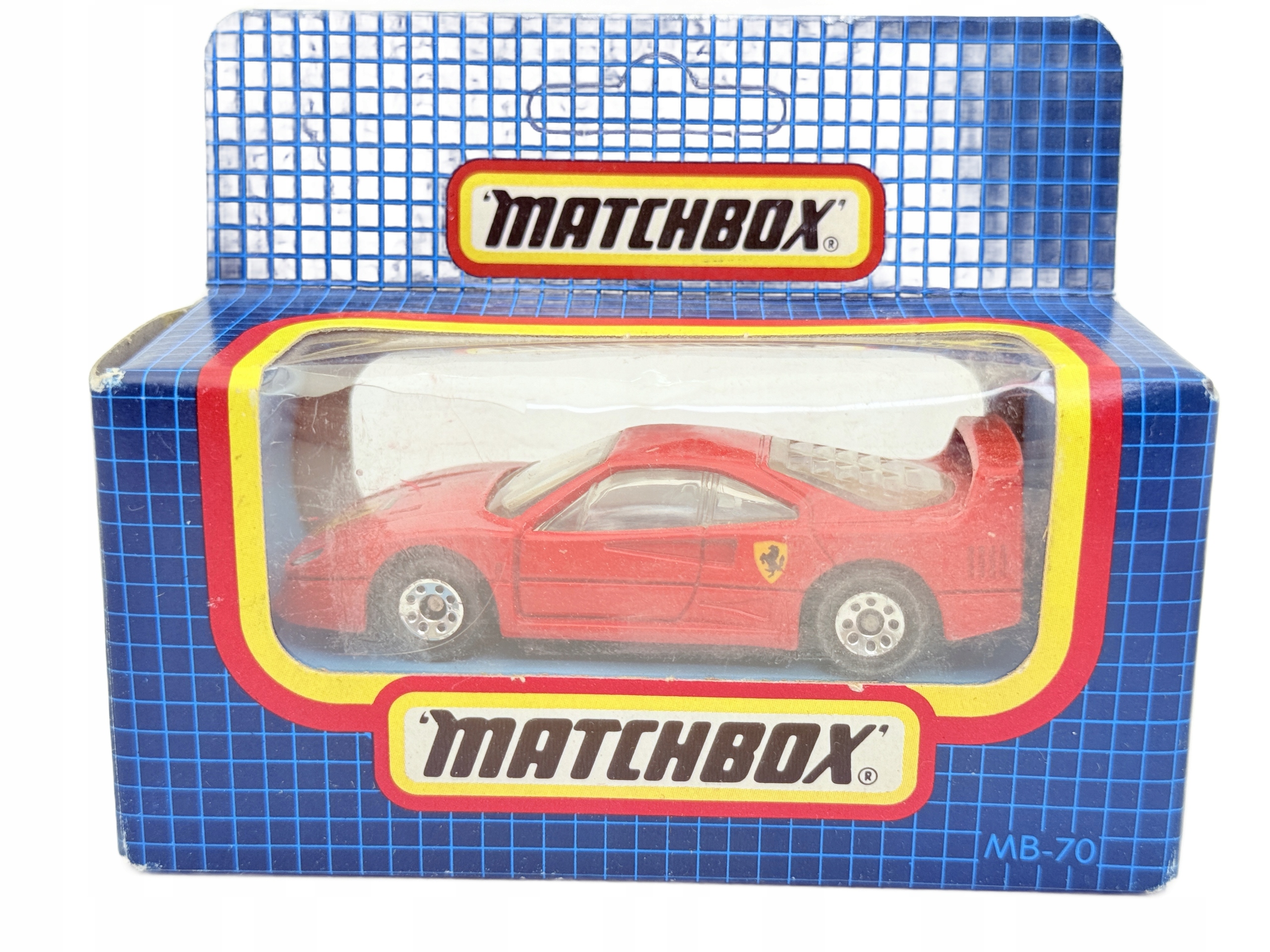 MB70 Ferrari F40, Matchbox, зроблений у Макао, Blue Grid Box, 1:60