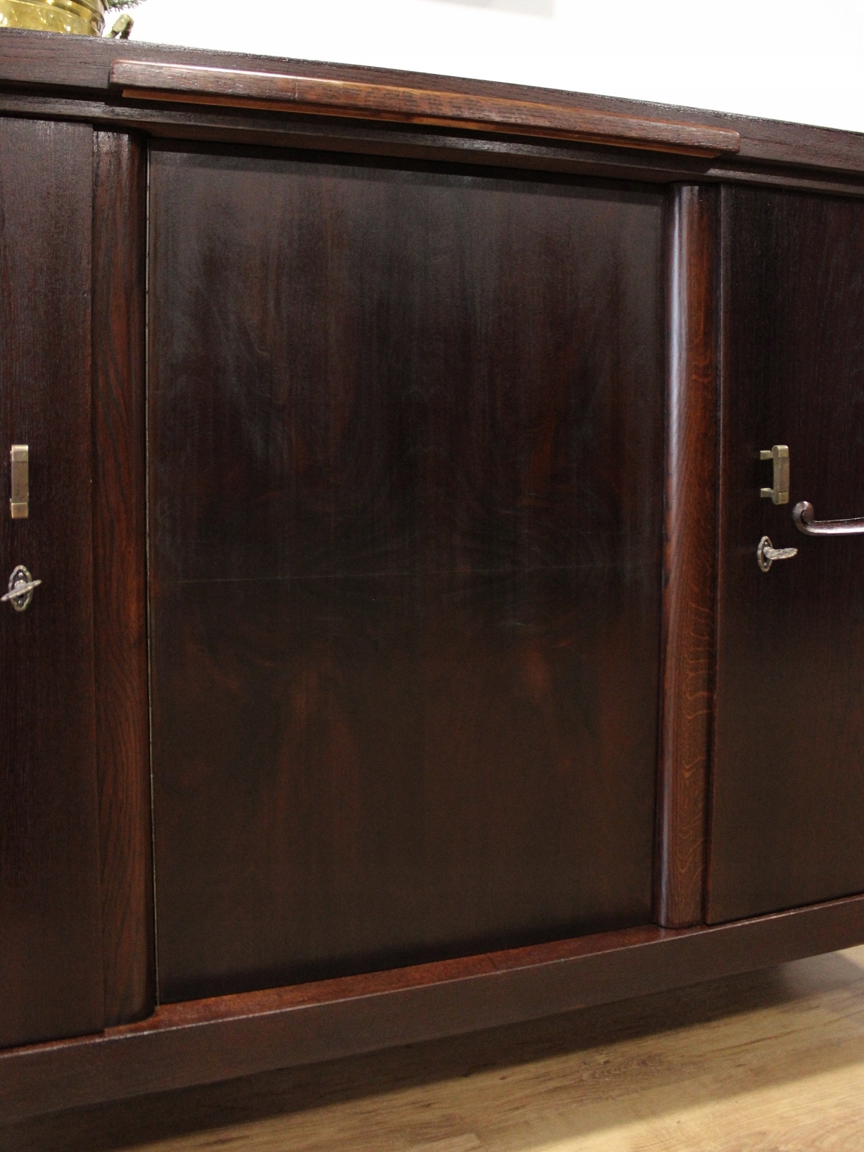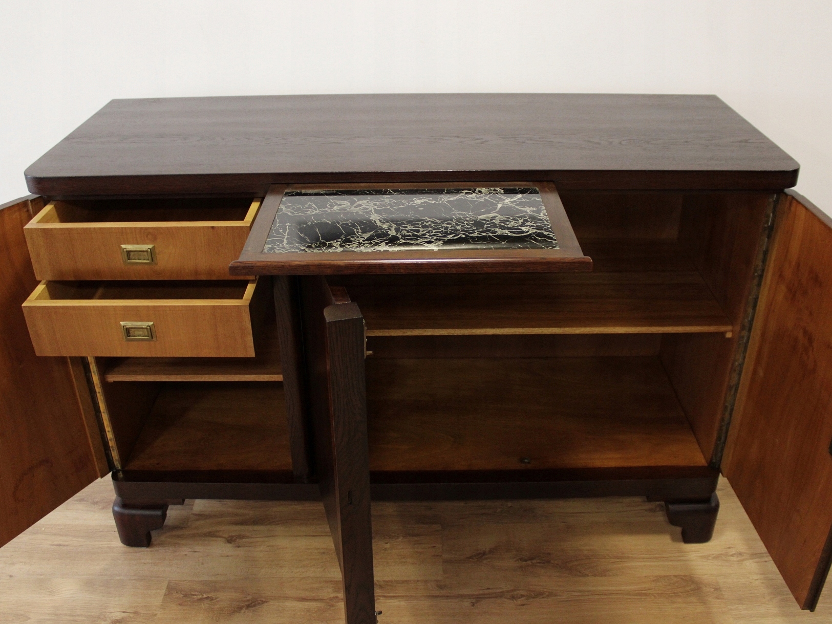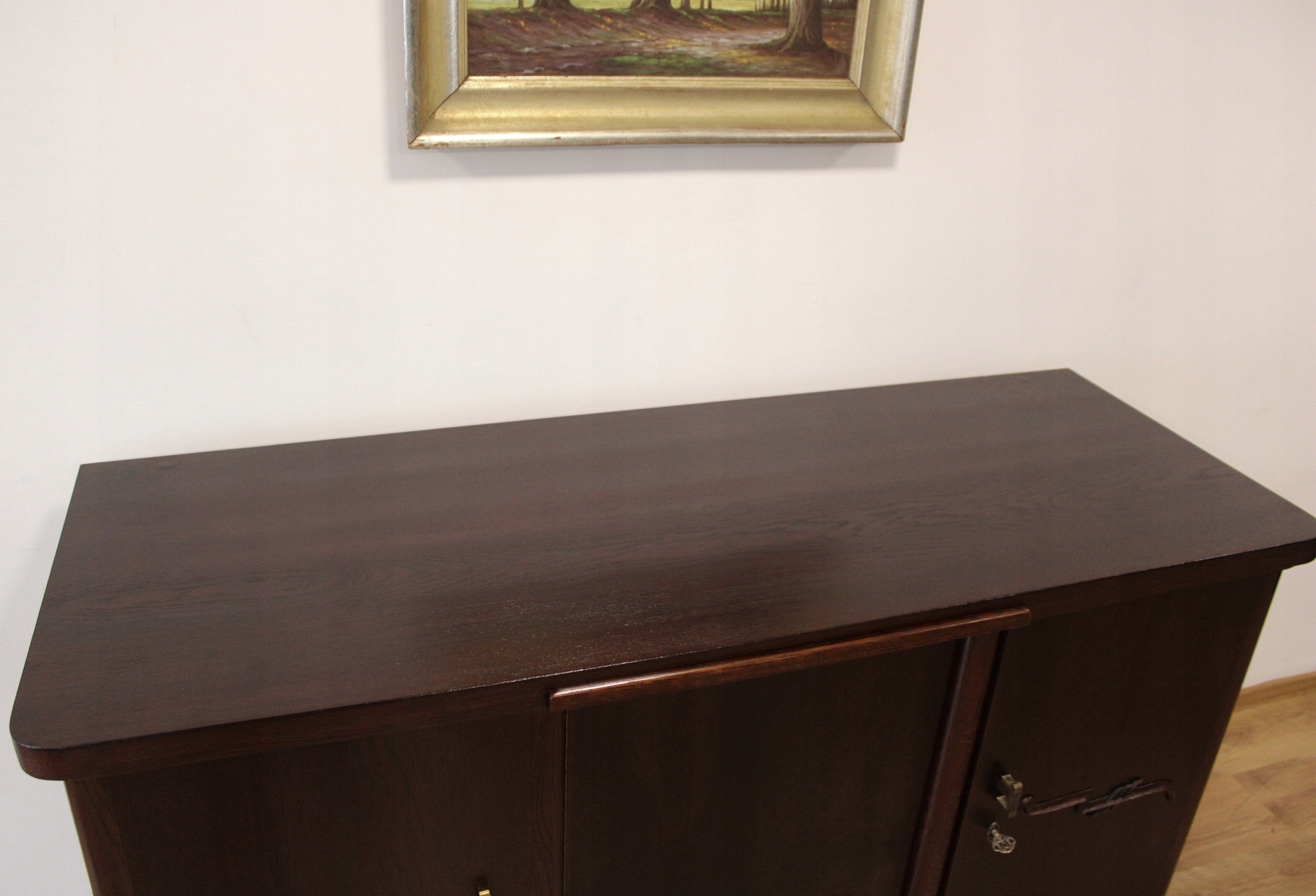Дуже хороший стан. Меблі готові до використання. Оновлено зовнішні поверхні та інтер’єр меблів. Меблі вже старі, а сліди минулого, які не впливають на їх естетичне сприйняття, є доказом автентичності меблів. Комод можна відразу поставити в квартиру.