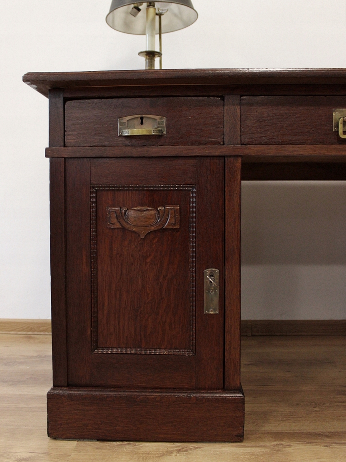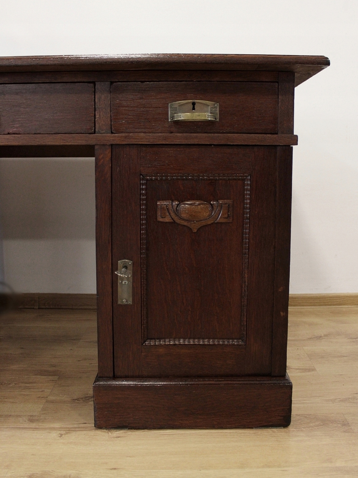 Гарний письмовий стіл із шафами на високій підставці. Дуже гарні декори та фурнітура.
