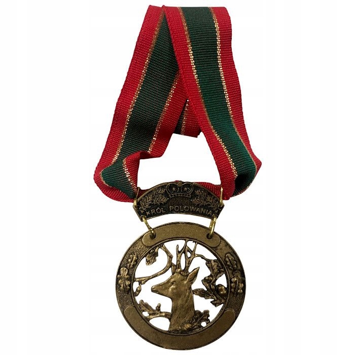 медаль "королем полювання" , підвішеним на елегантну зелену стрічку, мажорингу, мізерською силою. Це престижне відмінність, яка назавжди залишається сувеніром для справжніх мисливських царів.