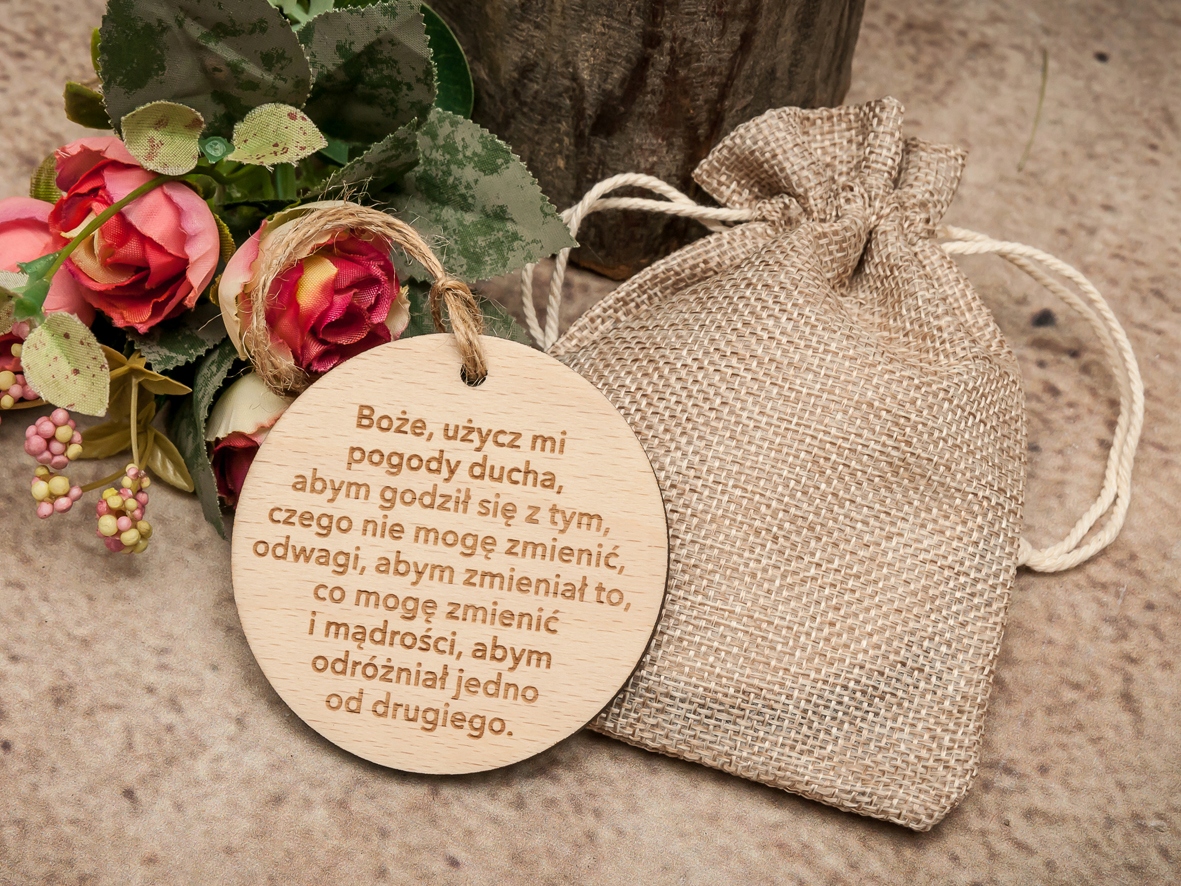 Медаль/ маркер, виготовлений у двосторонній техніці гравірування на буковому диску з діаметром Ø 7 см і товщиною 5 мм. Запит, ми можемо зробити менший диск.
