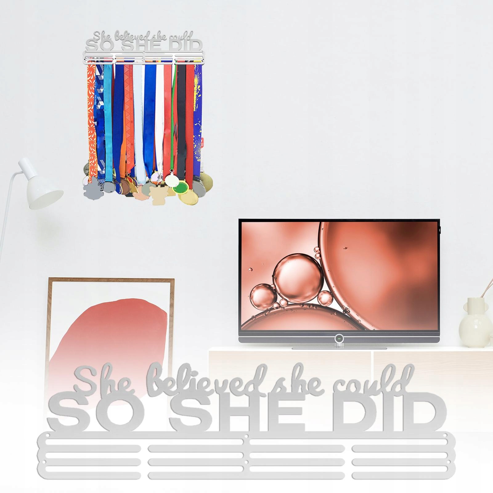 4[Правильний розмір] Власник стін для зберігання призів має розміри 45 см х 11,2 см / 17,72 дюйма x 4,41 дюйма і ідеально підходить для зберігання медалей.