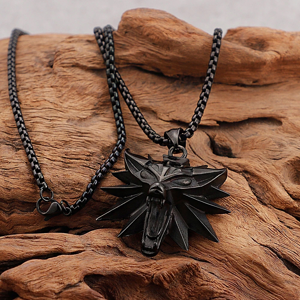 МЕДАЛЬЙОН ВІДЬМАКА НАМИСТО ВОВК, ЧОРНИЙ ВОВК, СТАЛЬ 316L
