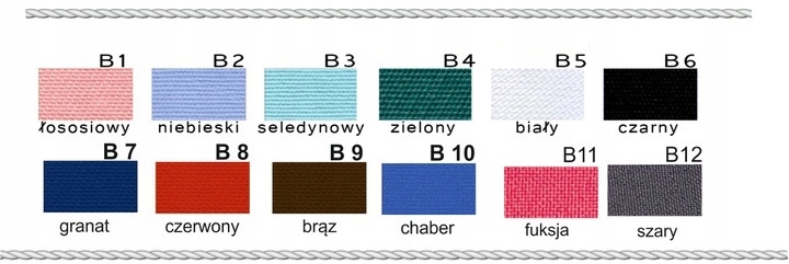 кольори: білий, чорний, зелений, червоний, синій, лосось, целадон, фуксія, сірий, сірий коричневий,