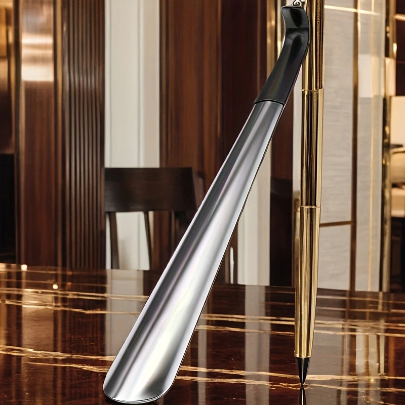 👠【 2 Срібні металеві довге взуття для взуття】 Металева ложка взуття виготовлена з металу, яка є більш стійкою та міцною, ніж пластикове та дерев’яне взуття. Зовнішній вигляд гладкий, сріблястий. Просто натисніть і можна вставити, що полегшує взуття