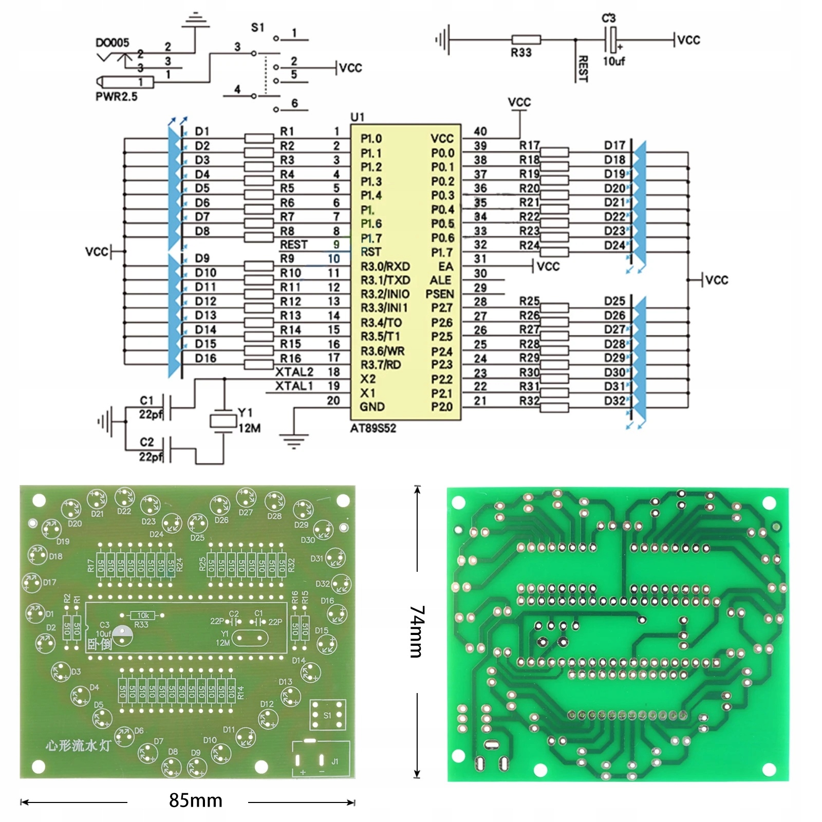 Mega 32 Led Multikolor Serce Efekt świetlny DIYKIT