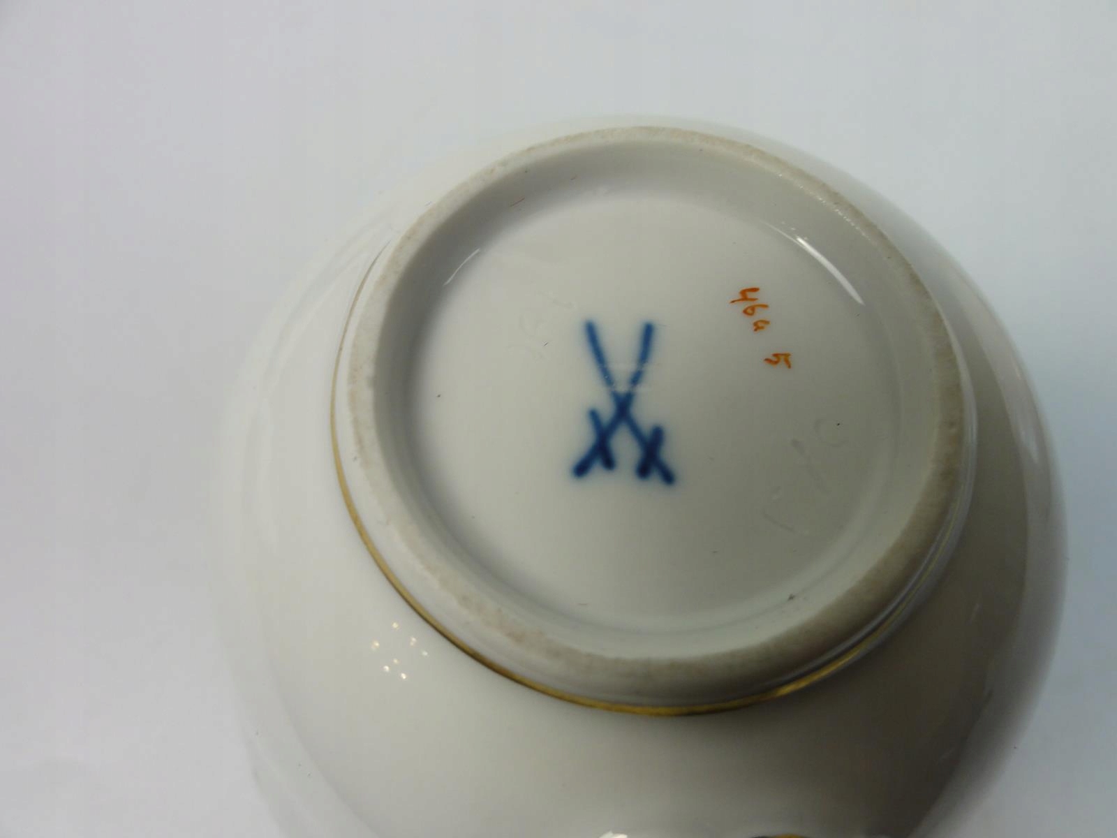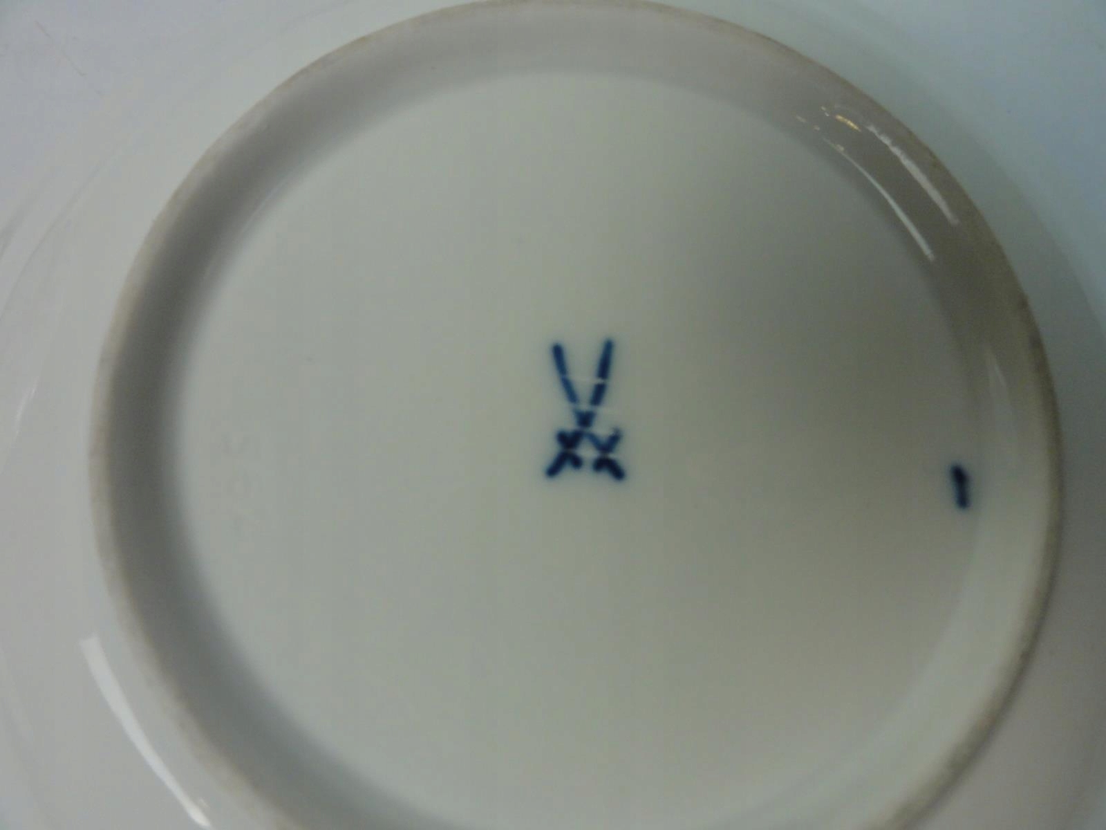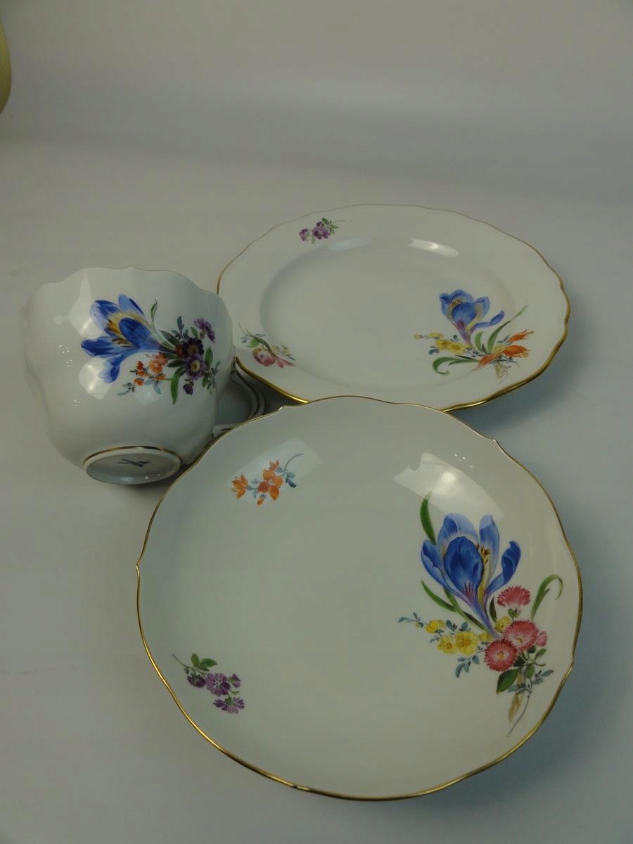 *підписано: Мейссен, на тарілці та блюдцеві з чотирма порізами, на чашці з двома,