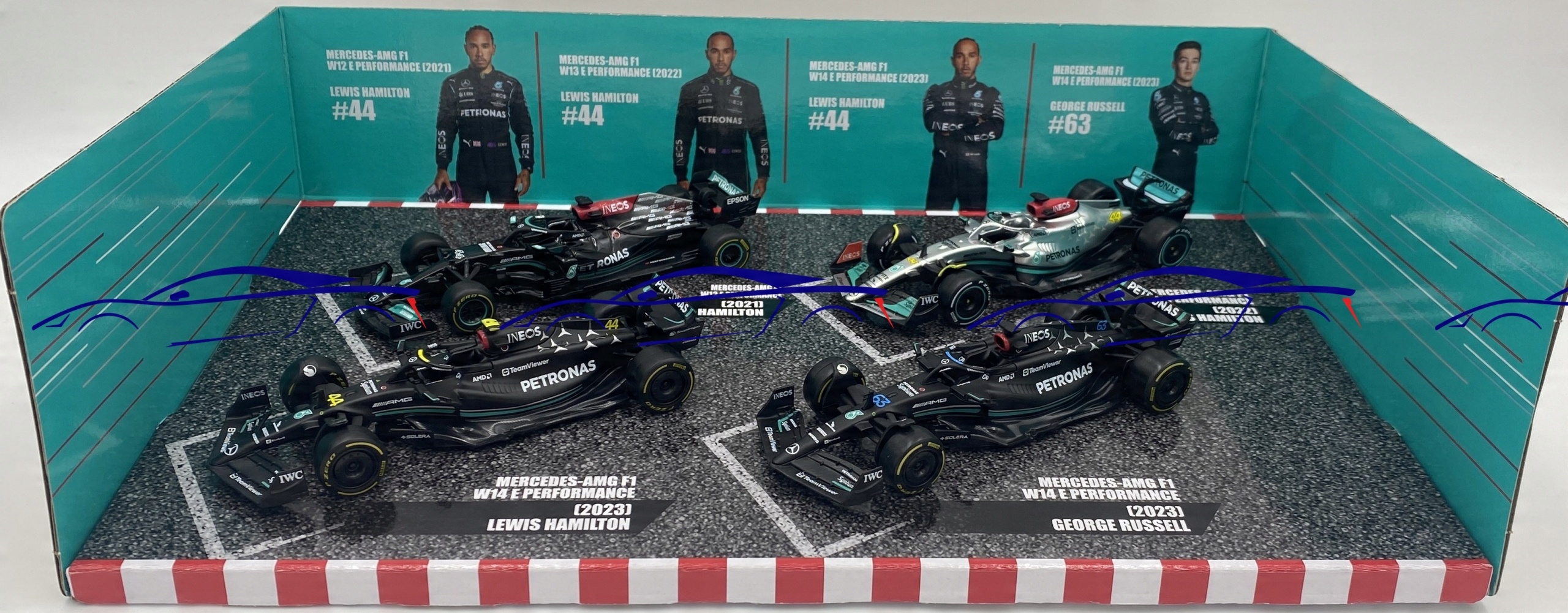 Mercedes AMG F1 Hamilton Russell W12 W13 W14 BBurago SET 1:43
