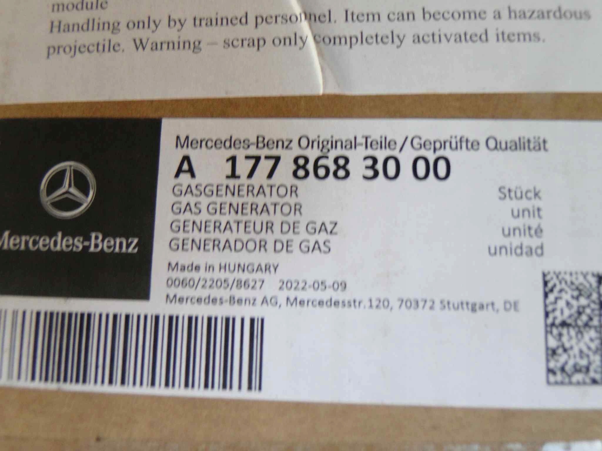 Mercedes B W247 247 вогнегасник. Картридж газогенератора