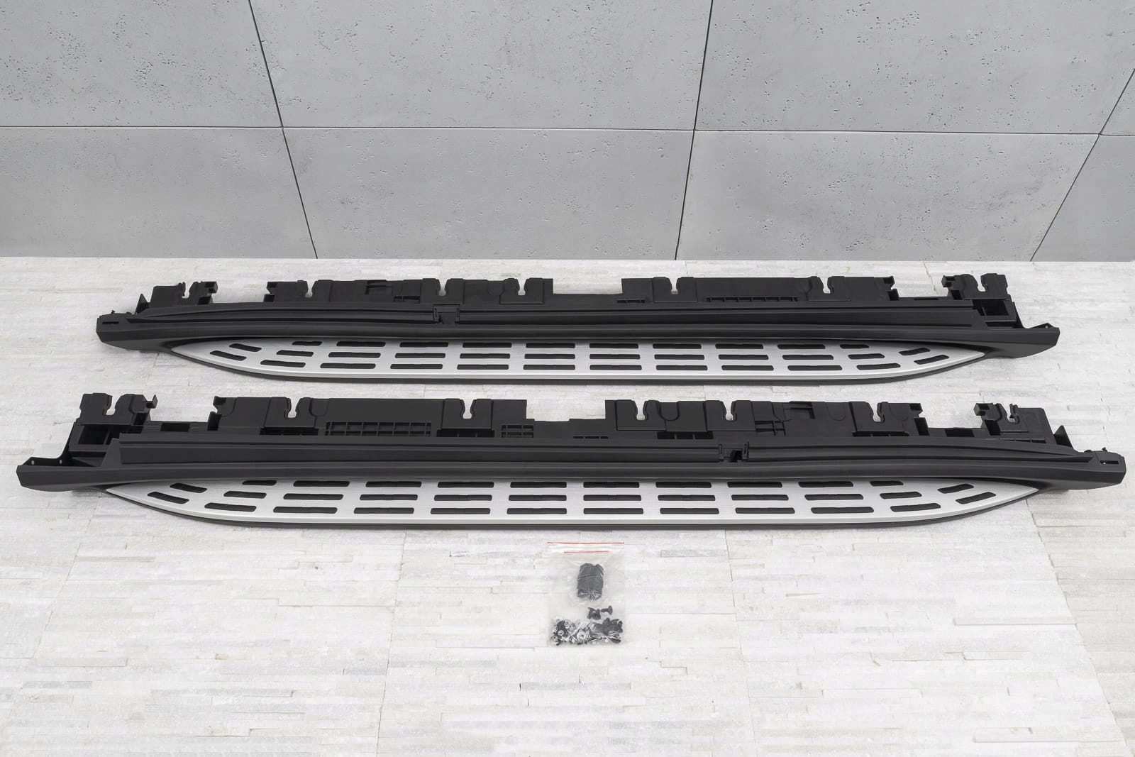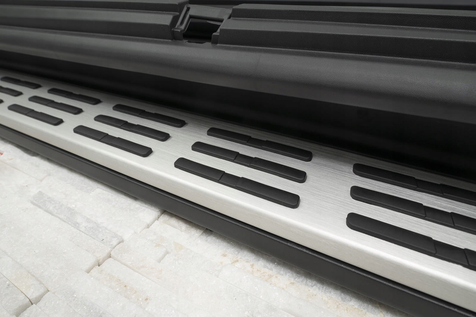 Бічні підніжки були розроблені для підвищення комфорту під час входу та виходу з автомобіля, а також для більш зручного робочого положення під час розміщення вантажів на даху автомобіля. Пороги не тільки забезпечують комфорт, але і підвищують безпеку, що особливо важливо для дітей і людей похилого віку.
