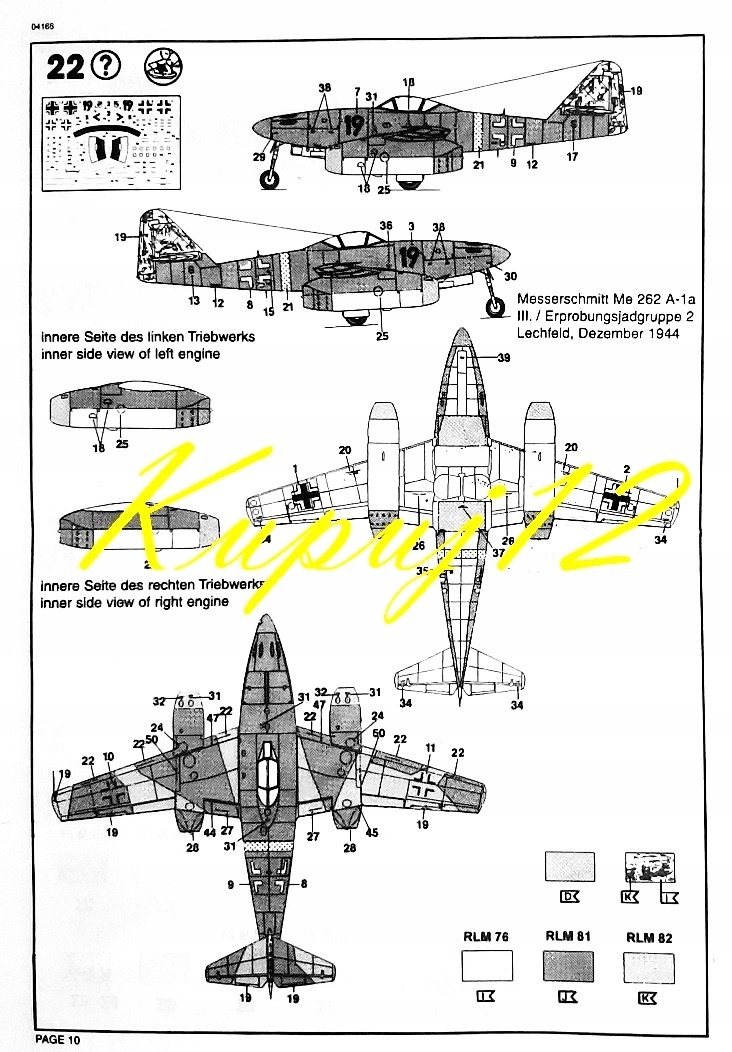 Messerschmitt ME-262 A-1A Aircraft + акрилові фарби для моделей .....