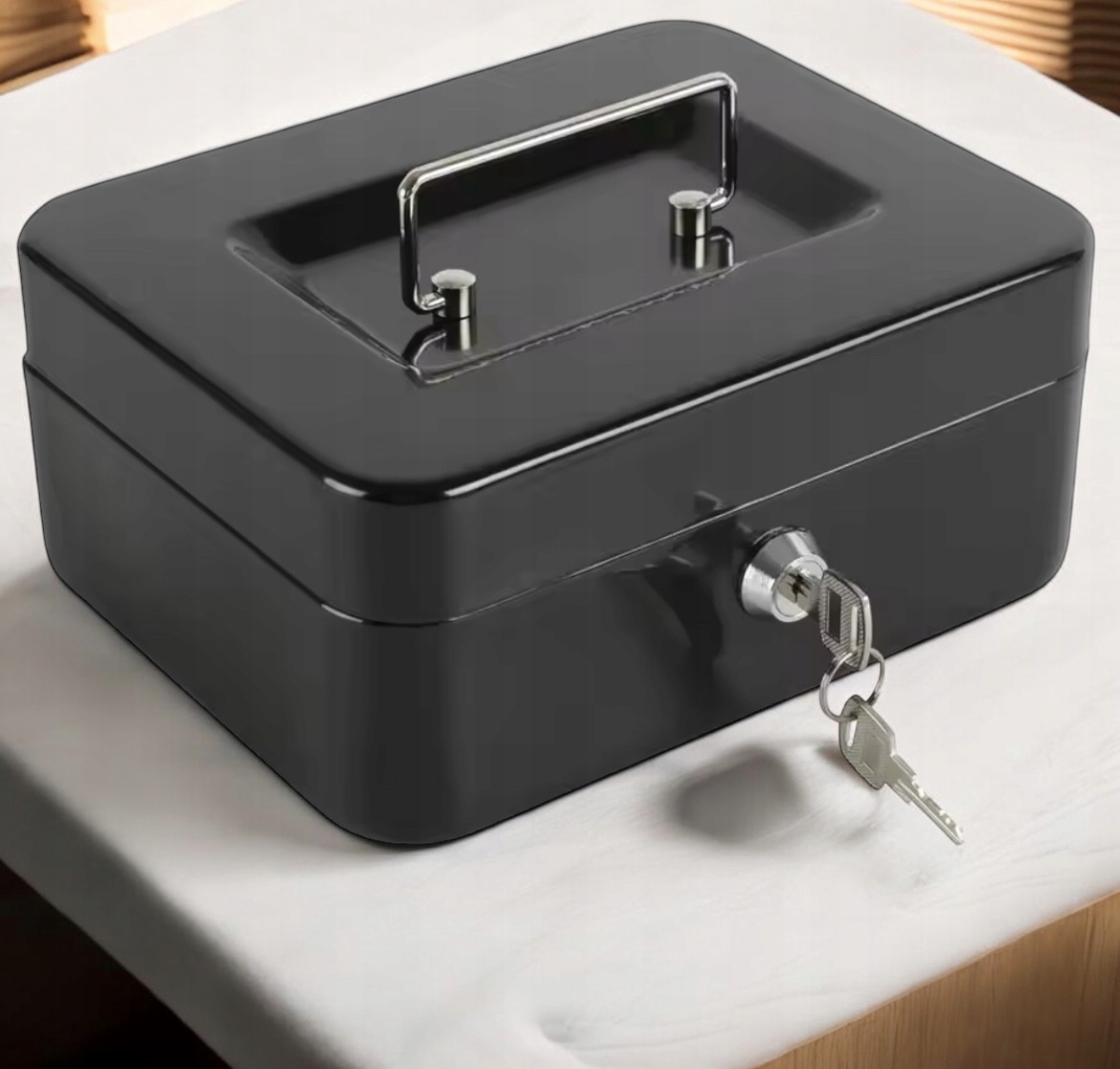 Металеві грошові шкатулки забезпечать високий рівень безпеки завдяки твердій конструкції з товстого металу та розташування. Незалежно від того, чи хочете ви захистити готівку, ювелірні вироби чи важливі документи, Ця касета буде працювати ідеально. Сховати більш цінні речі, набираючи спокій.
