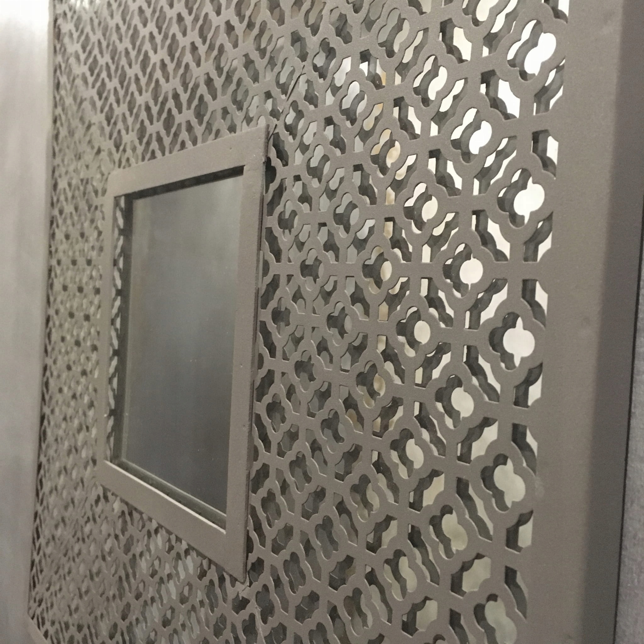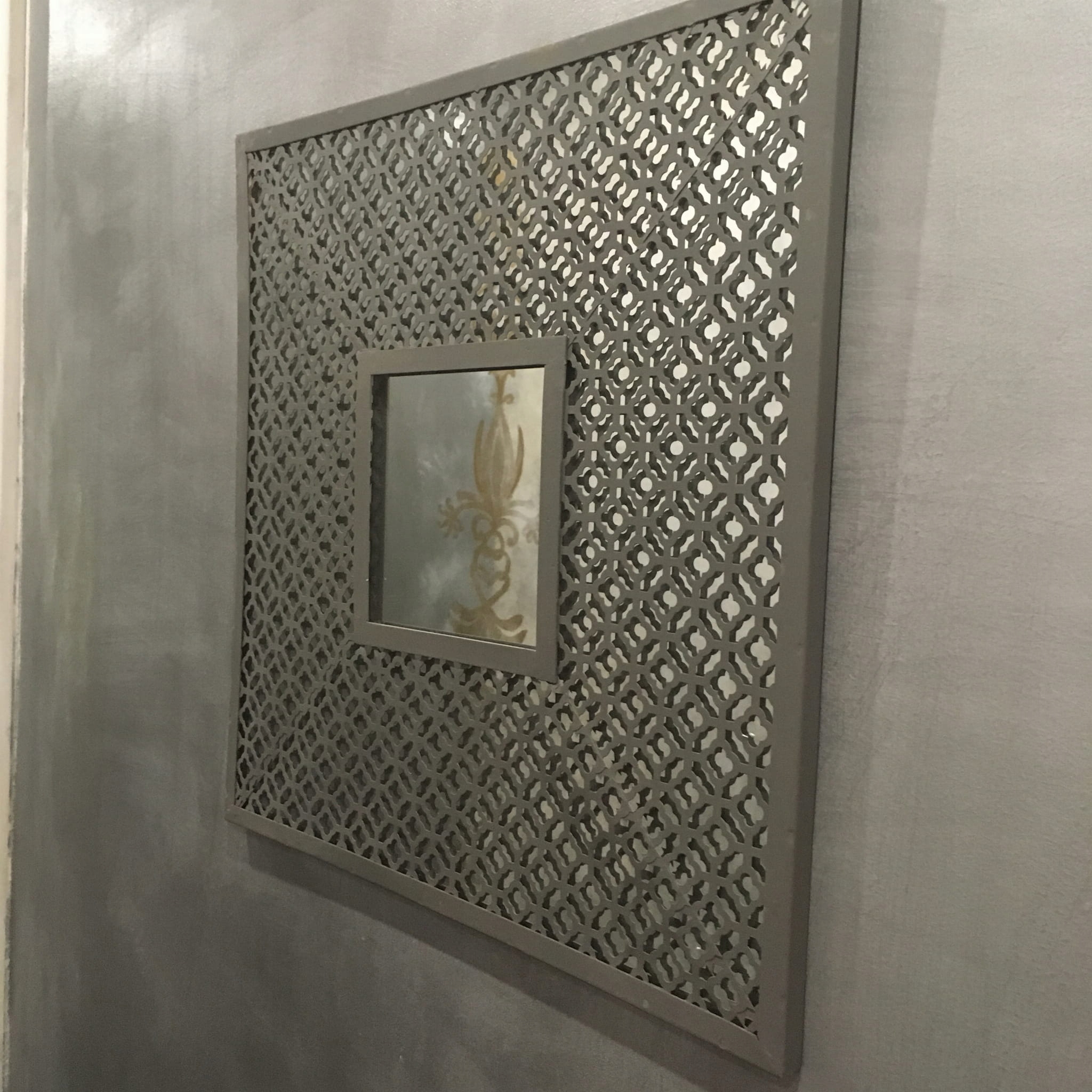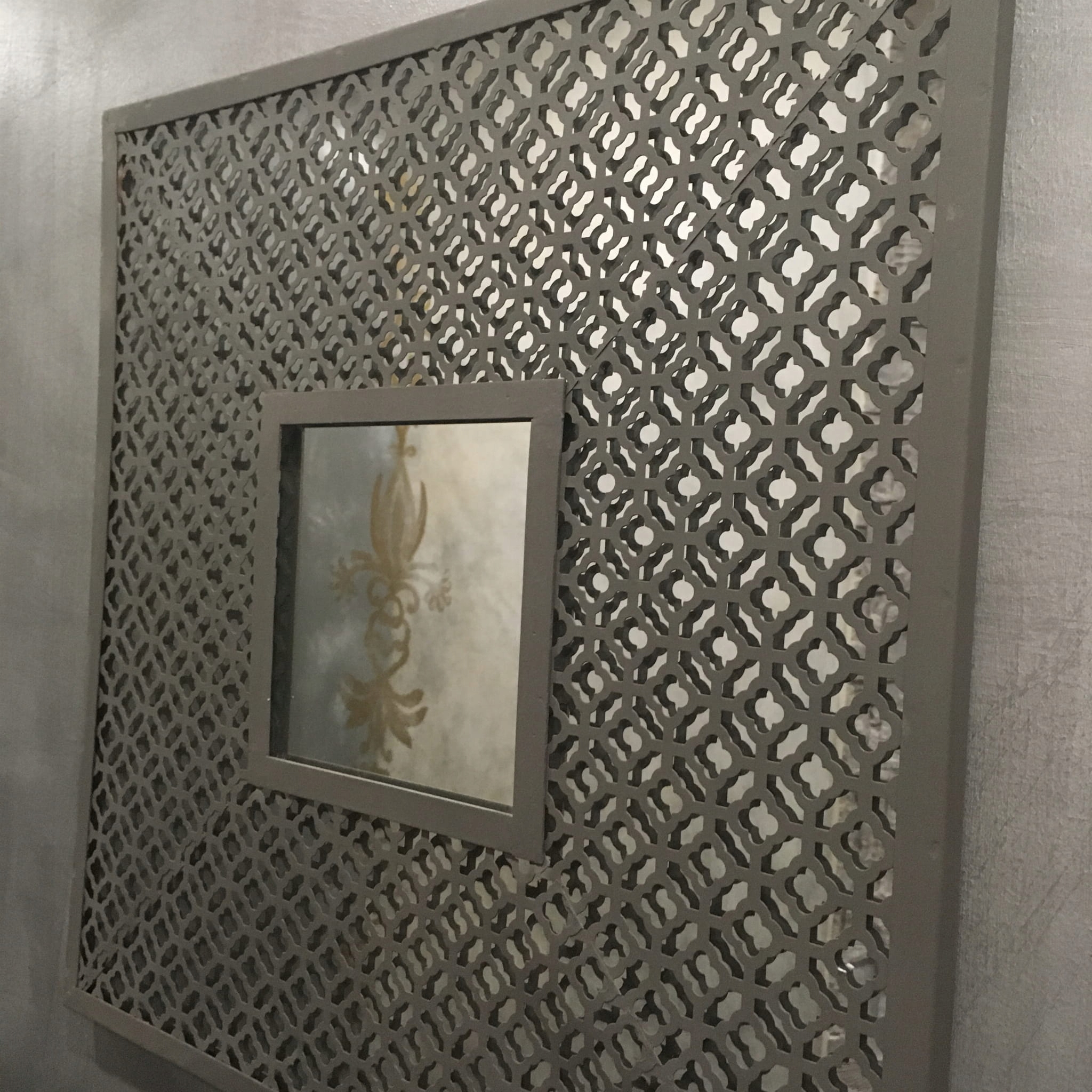 Квадратне дзеркало в широкій ажурній рамі з сірого металу. Оригінальна прикраса з ноткою гламуру, яку можна повісити на стіну. Декоративна форма і цікавий східний дизайн. Геометрична форма, яка підходить для різноманітних інтер'єрів. Він знайде своє місце у вітальні, спальні, холі, кухні, ванній кімнаті, студії, готелі чи ресторані. Ідеально підходить для подарунка.