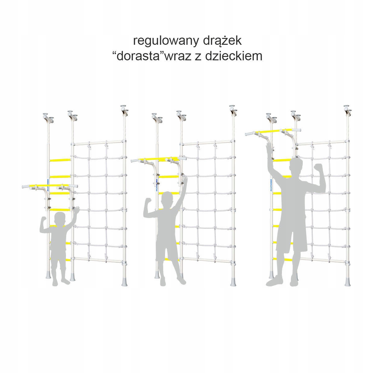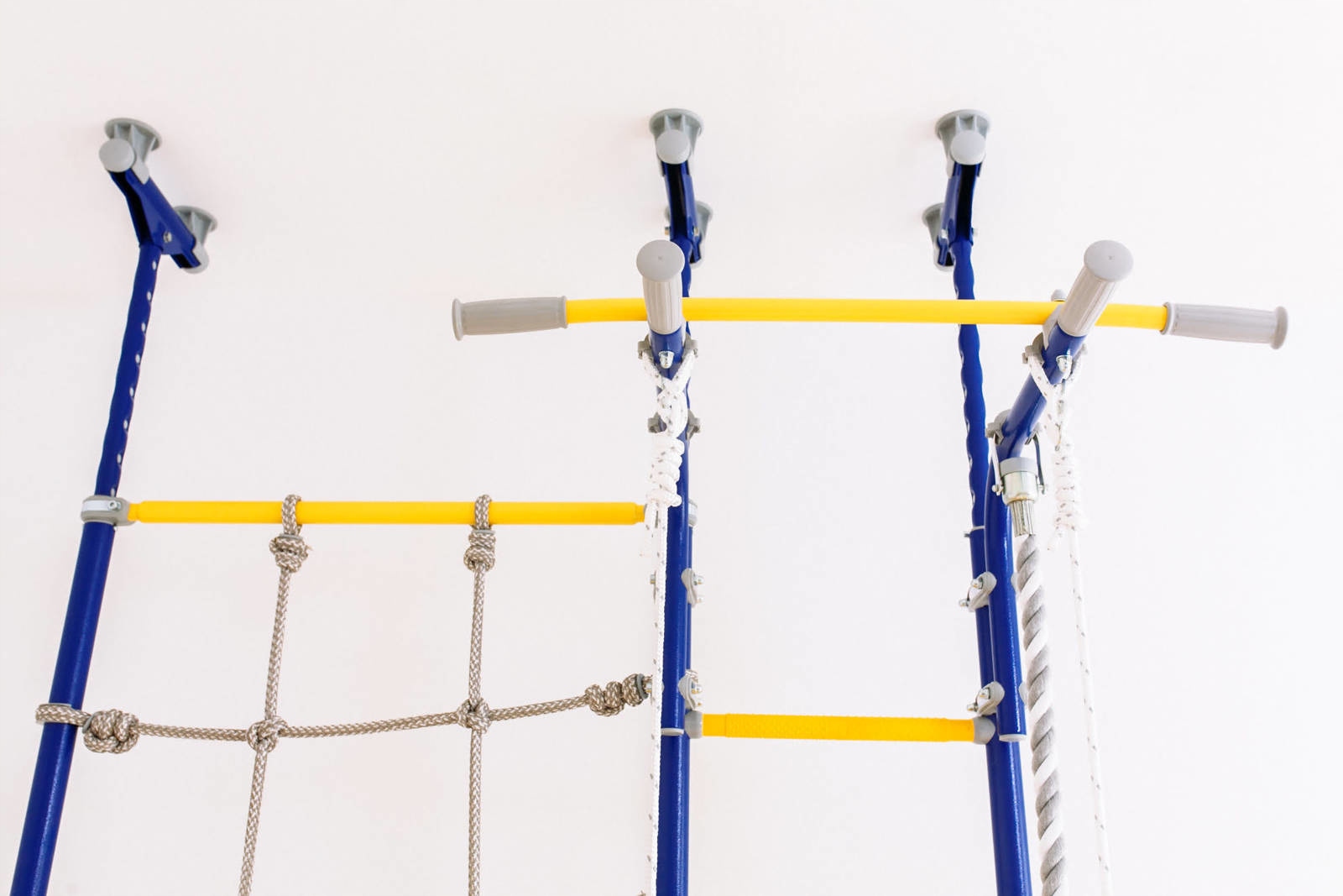 Гімнастичні та спортивні набори дуже міцно виготовлені з найвищої якості матеріалів. Дизайн поєднує металеві, дерев’яні та пластикові елементи, що спричиняє високу міцність і забезпечує дуже естетичний вигляд. Сходи сходи закінчуються м'якою пластиковою оббивкою з вистуками, що запобігає ковзанню ног і рук, при цьому масажуючи. Тренажерний зал, виготовлений зі сталі - буде служити протягом багатьох років і навіть протягом декількох поколінь. Пропозиція включає як яскраві кольори, так і приглушені відтінки. Технічні дані: