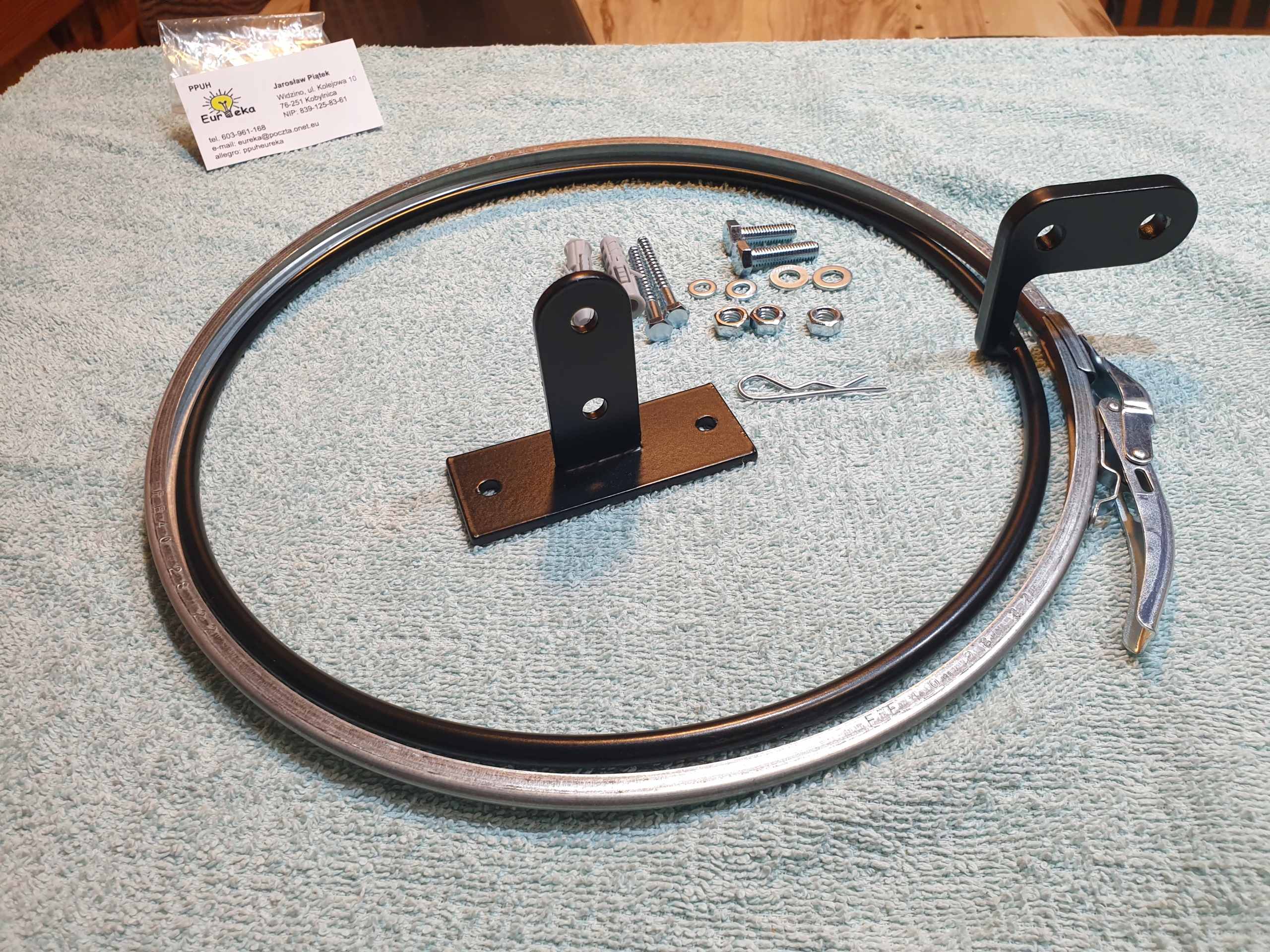 Предметом аукціону є комплектний обод з затискним кільцем, настінним кріпленням, штифтами (штифти можуть бути іншого кольору) з гвинтами та двома гвинтами з шайбами. , гайки та шплінт - все, що потрібно для кріплення сміттєзбірника до стіни.