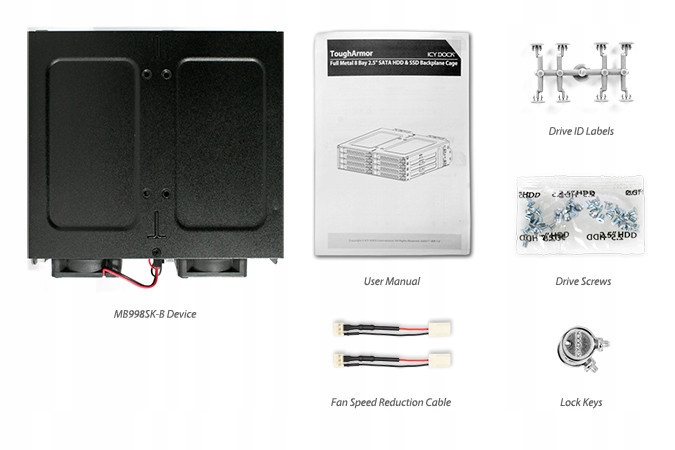 ToughArmor MB998SK-B пропонує можливість зберігати 8 дисків SATA 2 .5" із висотою від 5 до 7 мм в одному відсіку 5,25", що робить його чудовим рішенням для зберігання високої щільності