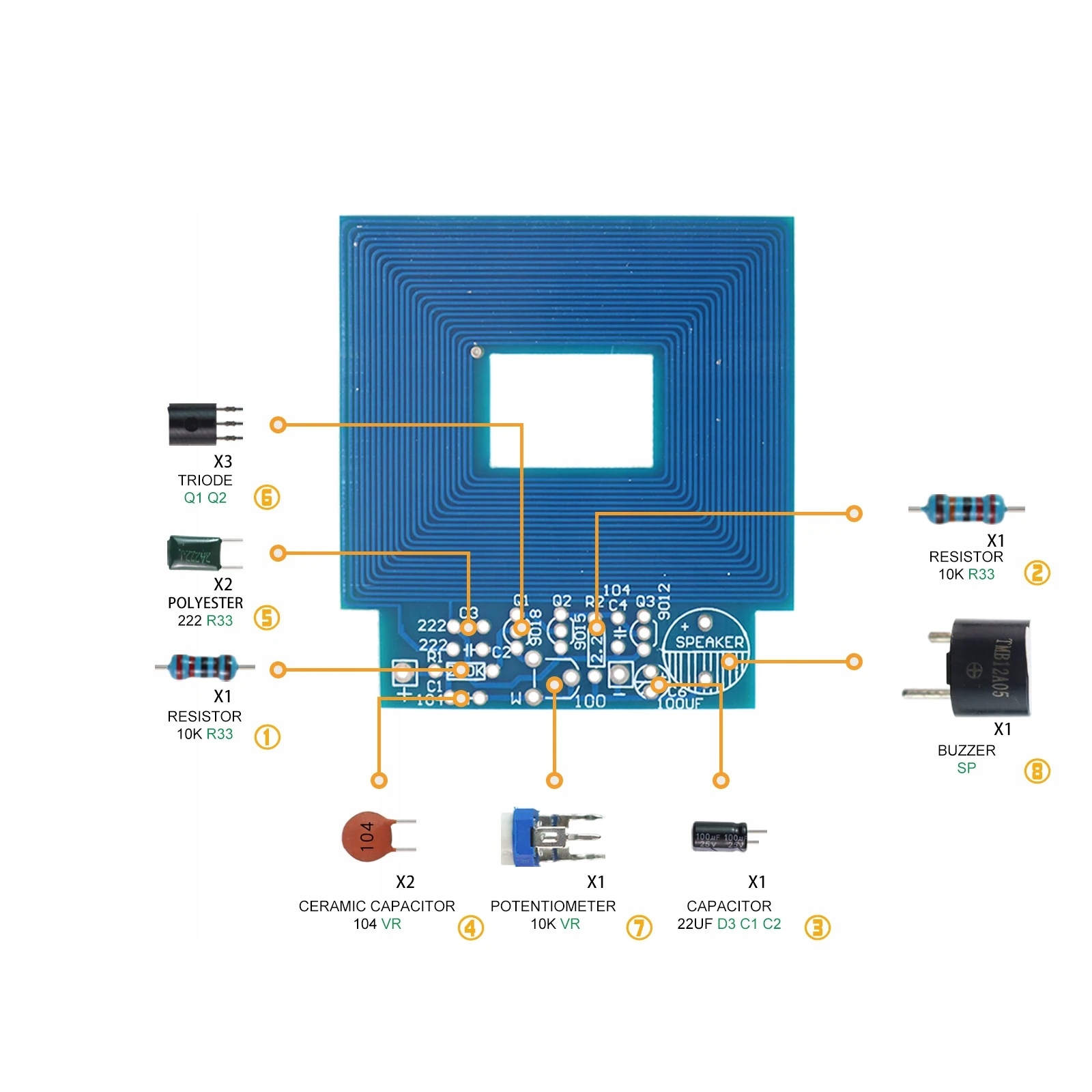 Металошукач, металошукач, проста конструкція для самостійного монтажу, виявляє метал максимум до 5 см, має регульовану робочу чутливість, сигналізує про виявлення металу звуком.