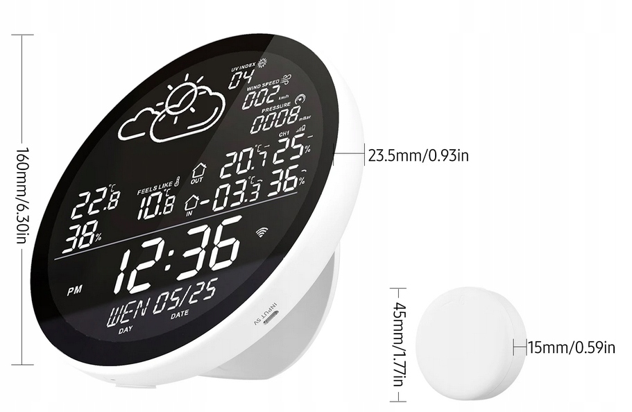 - ✅ Можливість розміщення на столі або повісити на стіну: Різні варіанти розміщення дозволяють адаптувати метеостанцію до індивідуальних потреб і умов житлового простору.
