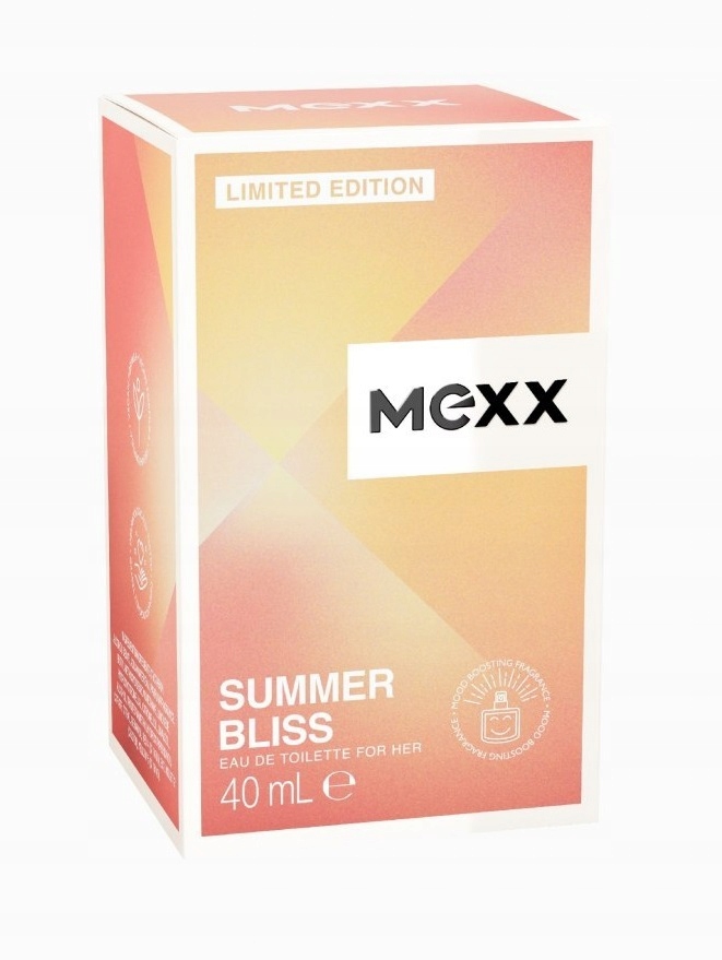 туалетна вода Mexx літня блаженство для неї-це освіжаюча композиція квіткових фруктів, що нагадує теплі літні дні. Цей надзвичайно енергійний аромат у обмеженому виданні був створений з інгредієнтів, які вважаються покращеними добре. У рамках дослідження споживачів аж 88% жінок підтвердили, що влітка блаженна туалетна вода сприяє покращенню настрою*. Формула веганського продукту була дерматологічно перевірена і підходить для всіх типів шкіри, включаючи чутливу шкіру.