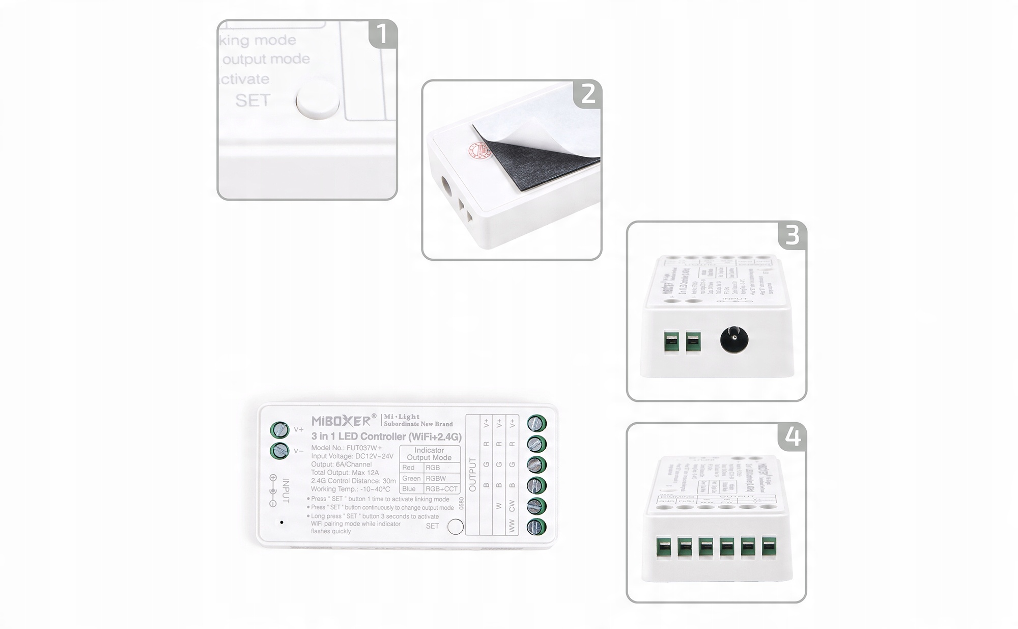 ✔ Simple installation h2> - Clear port markings: Power ports (DC 12–24 V) and outputs for connecting LED tapes have been clearly marked, which makes it easier to connect the device correctly and minimizes the risk of mistakes when installing