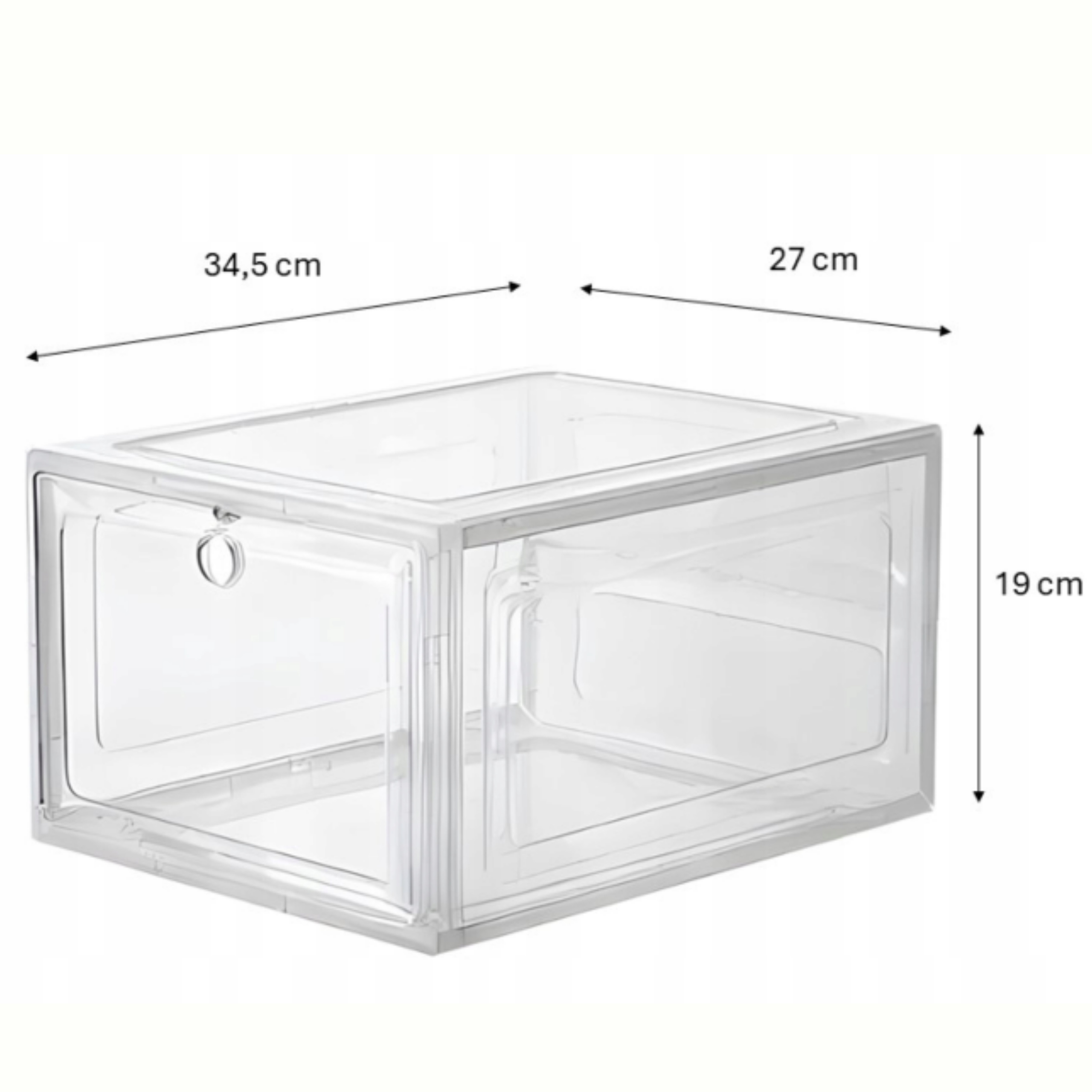 - Легкий доступ до вашого улюбленого взуття: прозора структура коробок дозволяє швидко знайти потрібну пару взуття без необхідності шукати в багатьох коробках.