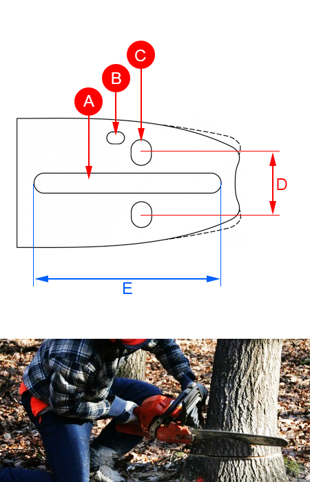 - C: Ширина направляючого зуба: 1,3 мм | 0,050"