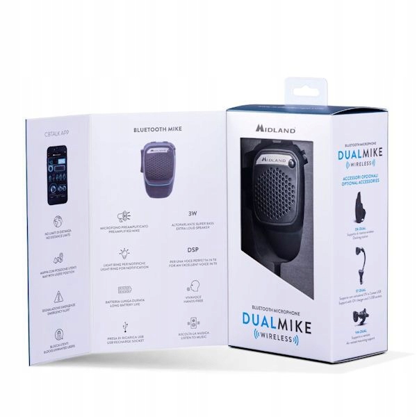 Оригінальний Midland Dual Mike мікрофон, що дозволяє спілкуватися через CB Radio (наприклад, Midland M10, M20, M-Mini) і мобільний додаток CB TALK (Android/iOs): b >