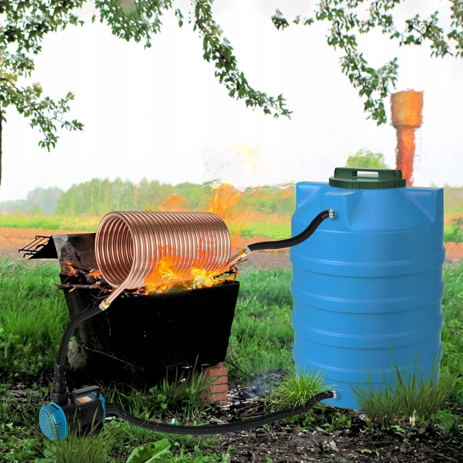 Мідна труба має стандартну 1/2 дюймову нитку і може бути підключено до більшості водопроводів, доступних на ринку. Використовуйте насос для накачування води з басейну до спіральної труби для виробництва циркуляції води.