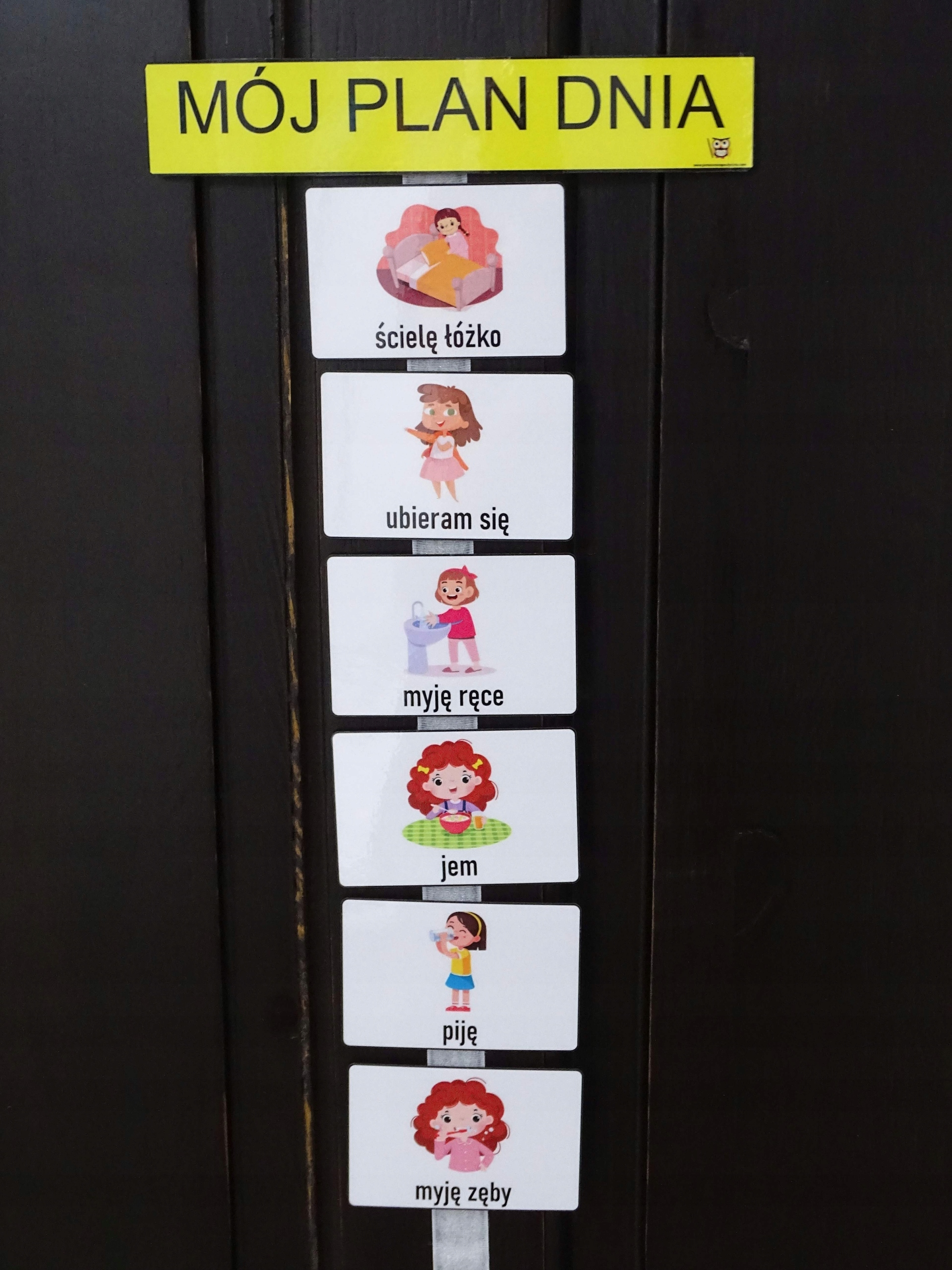 Мій щоденний розклад вдома - версія з додатками Velcro – навчальний посібник, спеціально призначений для батьків дітей з аутизмом, яким важко адаптуватися до змін. Його мета – організувати діяльність протягом дня. Дітям часто потрібна стабільність, будь-які несподівані зміни можуть викликати хвилювання. Передбачуваність діяльності протягом дня часто дає відчуття безпеки у світі, який діти часто не розуміють і по-іншому сприймають світ своїми органами чуття.