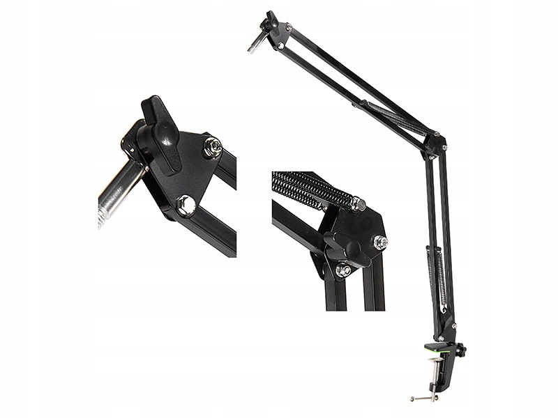 • Штатив – безпечний і стабільний без розгойдування. Сталева конструкція з подвійним плечем. Максимальна вантажопідйомність 2,5 кг, довжина руки 40 см. Оснащений різьбою 6,25 мм (5/8"), також підходить для мікрофонів Blue Yeti, Blue Snowball.