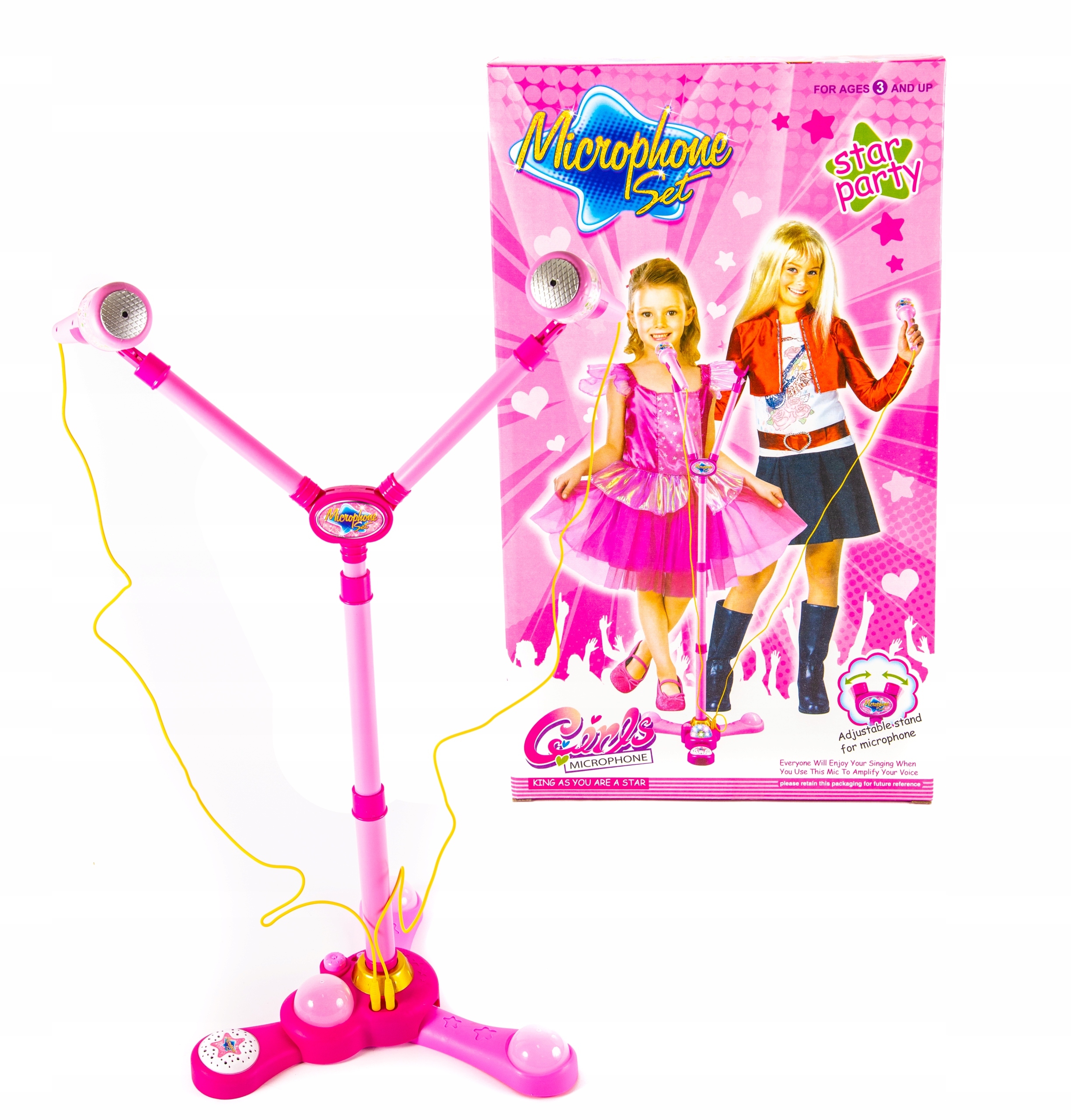 МІКРОФОН ПОДВІЙНИЙ З ПІДСТАВКОЮ, РОЖЕВИЙ НАБІР