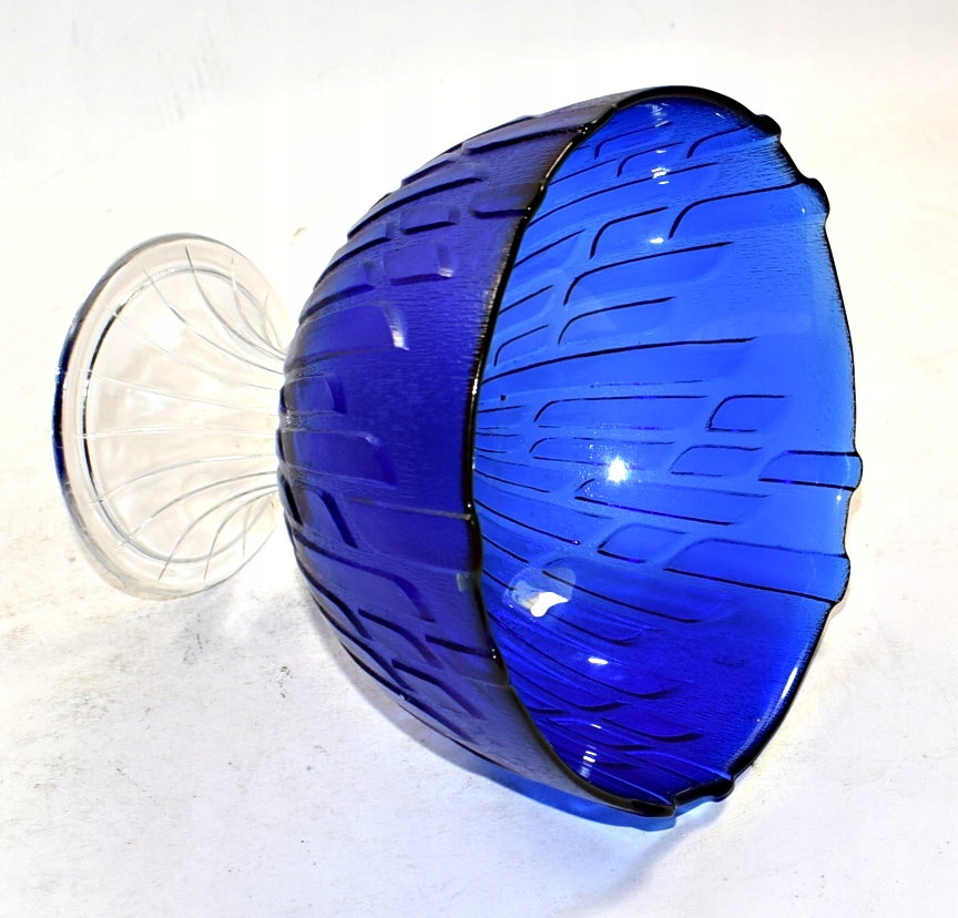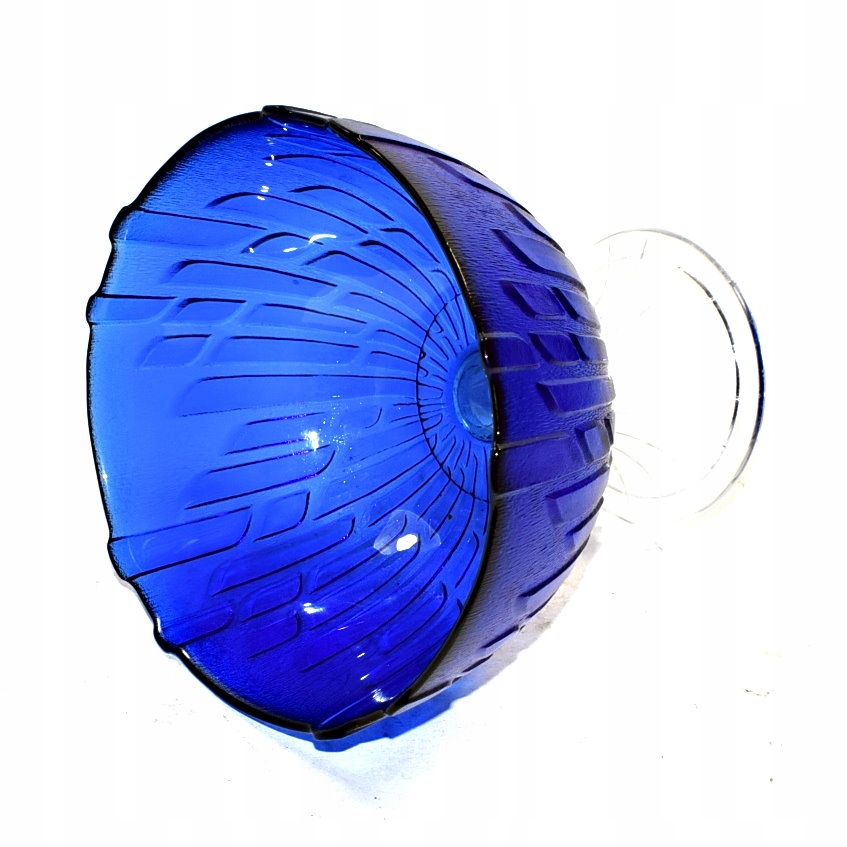 Предмет аукціону красива товстостінна тарілка. Кобальтове скло, тоноване в масі, з красивою, хвилястою, рельєфною чашею - скло 1970-х років.