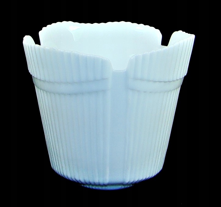Скло пресоване, пофарбоване в масу молочного кольору (lattimo glass). Рельєфний балдахін - проста форма, складена з поперечних рифлень.