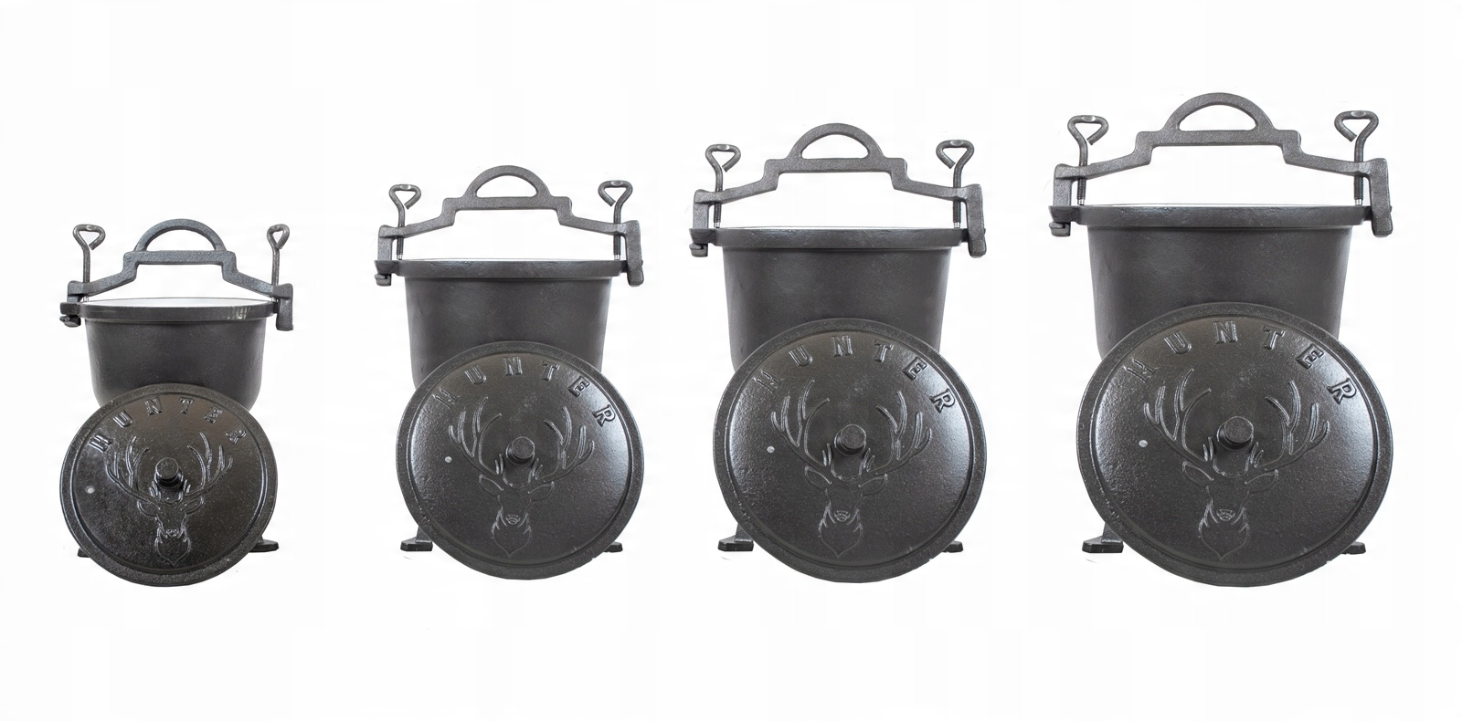 Оригінальний казан виготовлений з найякіснішого чавунного сплаву, стійкого до найвищих температур. Ця компанія першою застосувала спеціальний вентиляційний отвір в кришці, який регулює тиск всередині казана, що робить його на 100% безпечним. Казан можна стояти прямо на вогні, а завдяки зручній ручці його можна також підвісити над вогнем. Виріб також має роз'ємні ніжки, тому казан можна поставити в камін або прямо у вогнище. Завдяки тисненню на обкладинці ви можете бути впевнені, що купуєте оригінальний і безпечний товар.