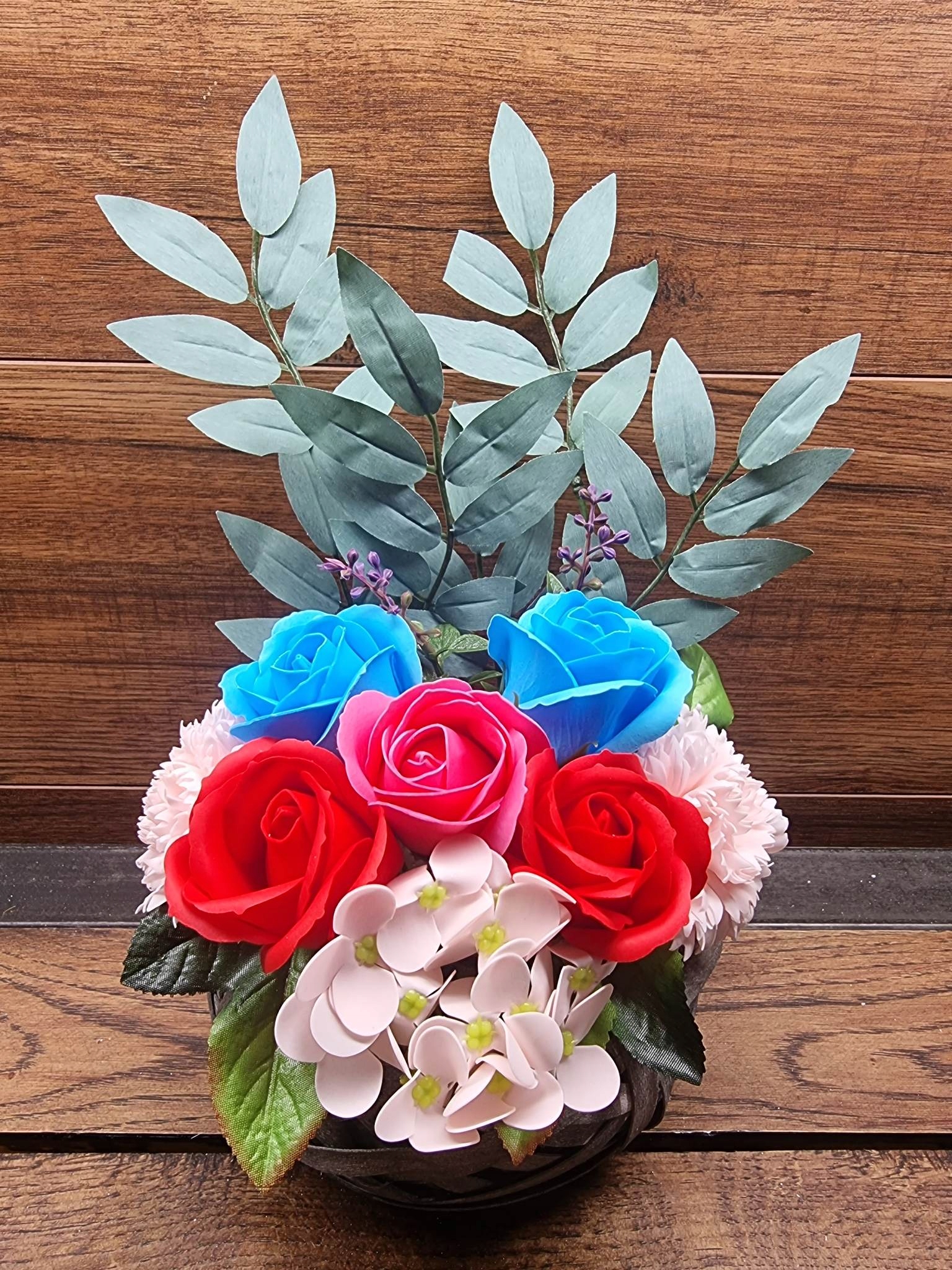 Букет із трояндами та іншими мильними квітами — ідеальний подарунок для коханої людини або гарна прикраса для вашого дому чи офісу .