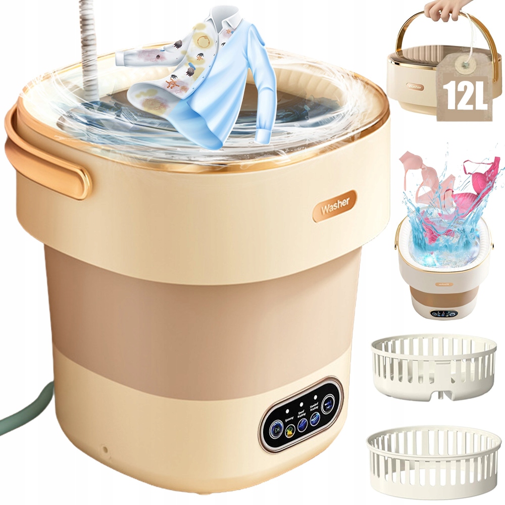 12-літрова портативна міні-пральна машина з відцентровим-легким і простим у транспорті. Складний дизайн робить його ідеальним для подорожей та невеликих квартир.