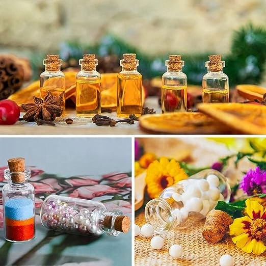 Набір до 100 штук декоративних прозорих міні-пляшок з пробками.