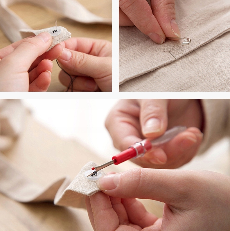 Різні типи голок дозволять вам працювати з різними матеріалами, залежно від їх структури та товщини. Спеціальне пристосування для втягування нитки в голку полегшить це заняття навіть людям похилого віку або тим, у кого просто поганий зір або фізичні навички.