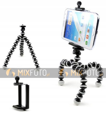 Гнучкий штатив зі стійкою, міцною конструкцією та тримачем для смартфонів і класичних мобільних телефонів. Mobile Holder — ідеальний пристрій для користувачів мобільних телефонів (смартфонів) із камерою. Він дозволить щоб вирівняти та стабілізувати камеру на нерівних поверхнях, об’єктах. Білі вставки штатива покриті гумою, щоб ще більше підвищити його ефективність.