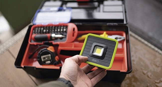 - ПОТУЖНІСТЬ ТА ЯСКРАВІСТЬ: робочий прожектор, що перезаряджається, із технологією COB LED і загалом 3 режимами освітлення COB LED - 100% потужність (для великих поверхонь і широкої яскравості, світловий потік 1000 лм, радіус дії 40 м), економія батареї Режим 50% (зі світловим потоком 500 люмен і дальністю світла 30 метрів) та економічний режим при 25% потужності (250 люмен і дальність світла 20 метрів)