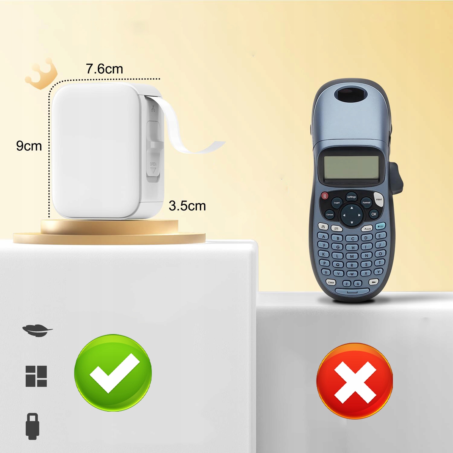 - ✅【ЛЕГКИЙ ТА ПОРТАТИВНИЙ】 Нова модель. компактний і привабливий принтер етикеток: розміри: 9x7,6x3,5 см, вага: лише 190 г. Легко помістіть Mini Label Maker у свою кишеню, щоб друкувати етикетки в режимі реального часу – будь-коли та будь-де. Хороший помічник для розмітки та впорядкування речей.