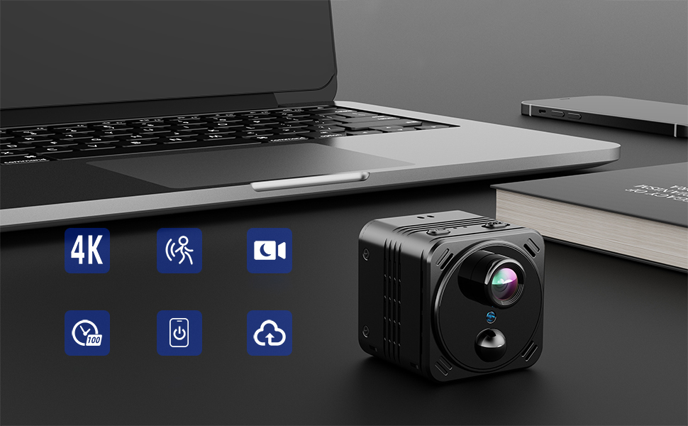 Міні -камера вбудована -в інфрачервоних датчиках "без світіння", яке автоматично вмикається в поганих умовах освітлення, що дозволяє моніторинг зображення з камери 24 години на день. Він також пропонує постійне, безкоштовне зберігання в хмарі в триденному циклі, тому ви можете дивитись фільми за останні 3 дні без картки пам'яті чи підписки.