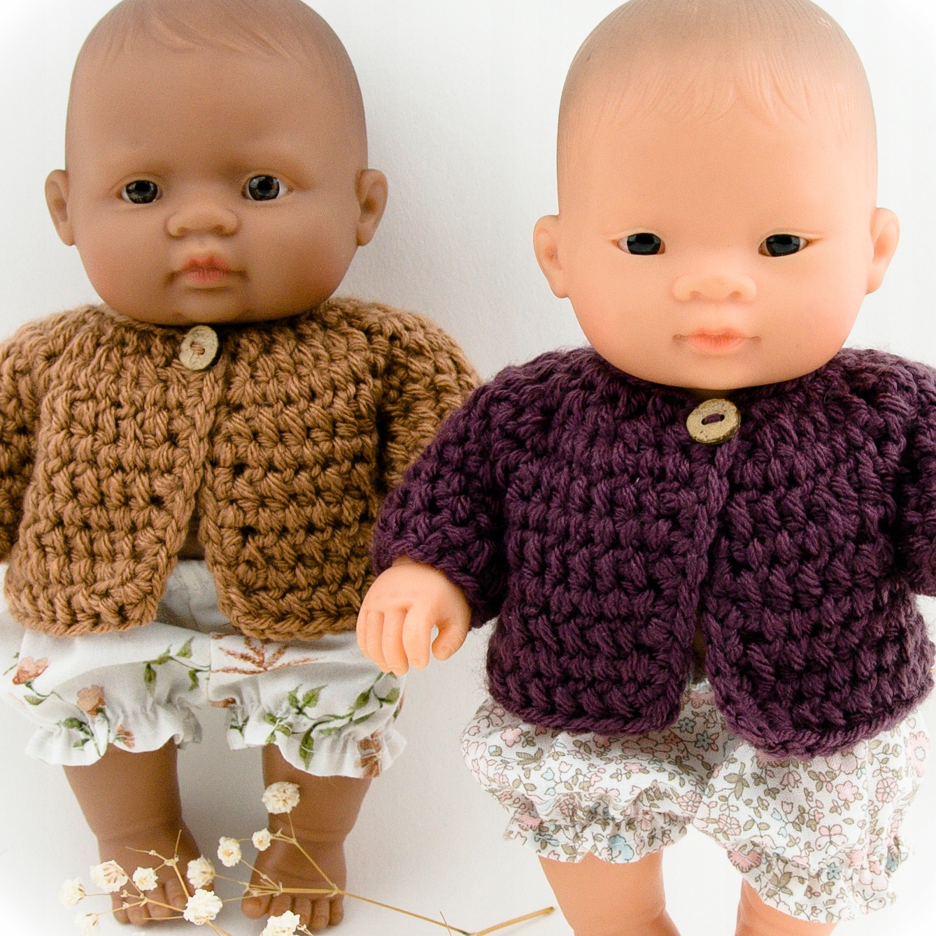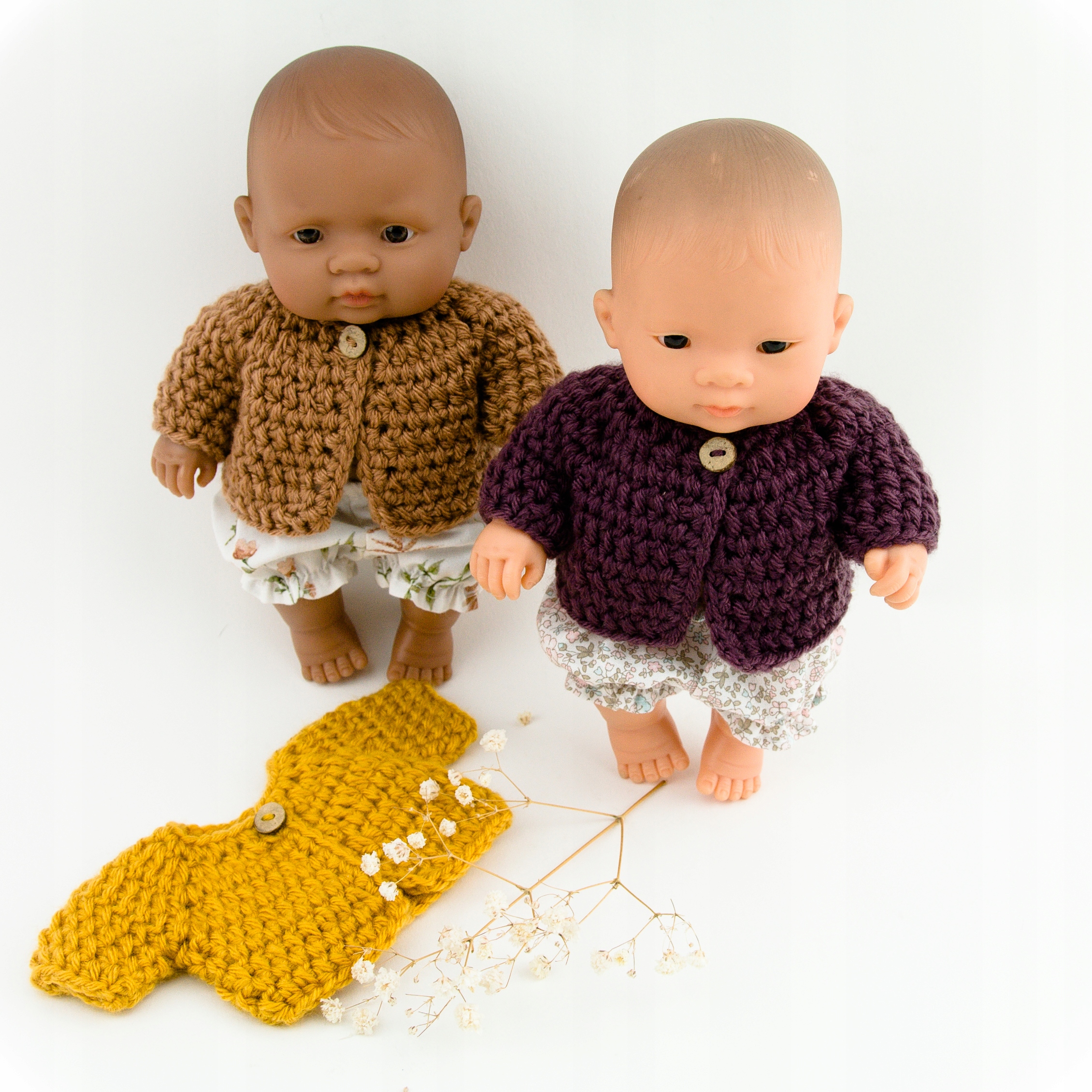 светр, виготовлений ручним в'язанням, ідеально підходить для 21 см високих дитячих ляльок.