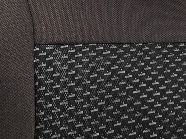 Серія < covers b>КОМФОРТ виготовлена з високоякісної оббивної тканини темно-сірого/графітового кольору. У середній смузі (наповнення) використовується жаккардовий матеріал. Матеріал (100% поліестер) ламінований пінополіуретаном товщиною 3 мм і підкладкою, він запобігає зсуву та зминання чохлів, а його гнучкість забезпечує дуже хороше прилягання до сидінь. Передні сидіння виготовлені з двох частин - окремо для сидіння і окремо для спинки (якщо конструкція сидіння не робить це неможливо) - чохли першого ряду не знімаються під час використання. Передні сидіння мають шов AIRBAG (сертифікат PIMOT) для бічних подушок безпеки.