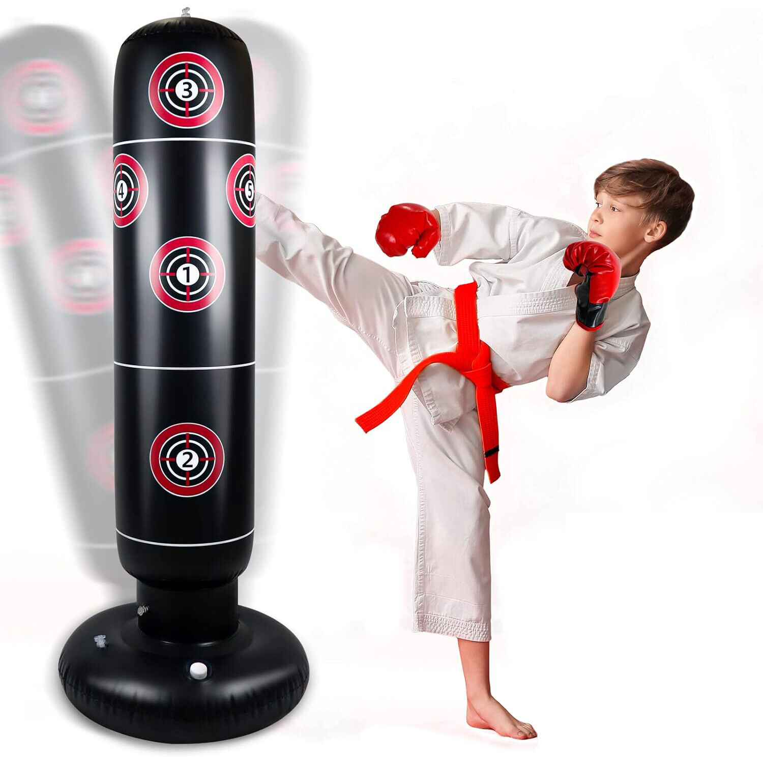 🥊🥊 【Матеріал ПВХ】:Високоякісний і міцний матеріал ПВХ може витримувати вплив сили тяжіння і є дуже безпечним. Дитина може займатися без боксерських рукавичок або протекторів.