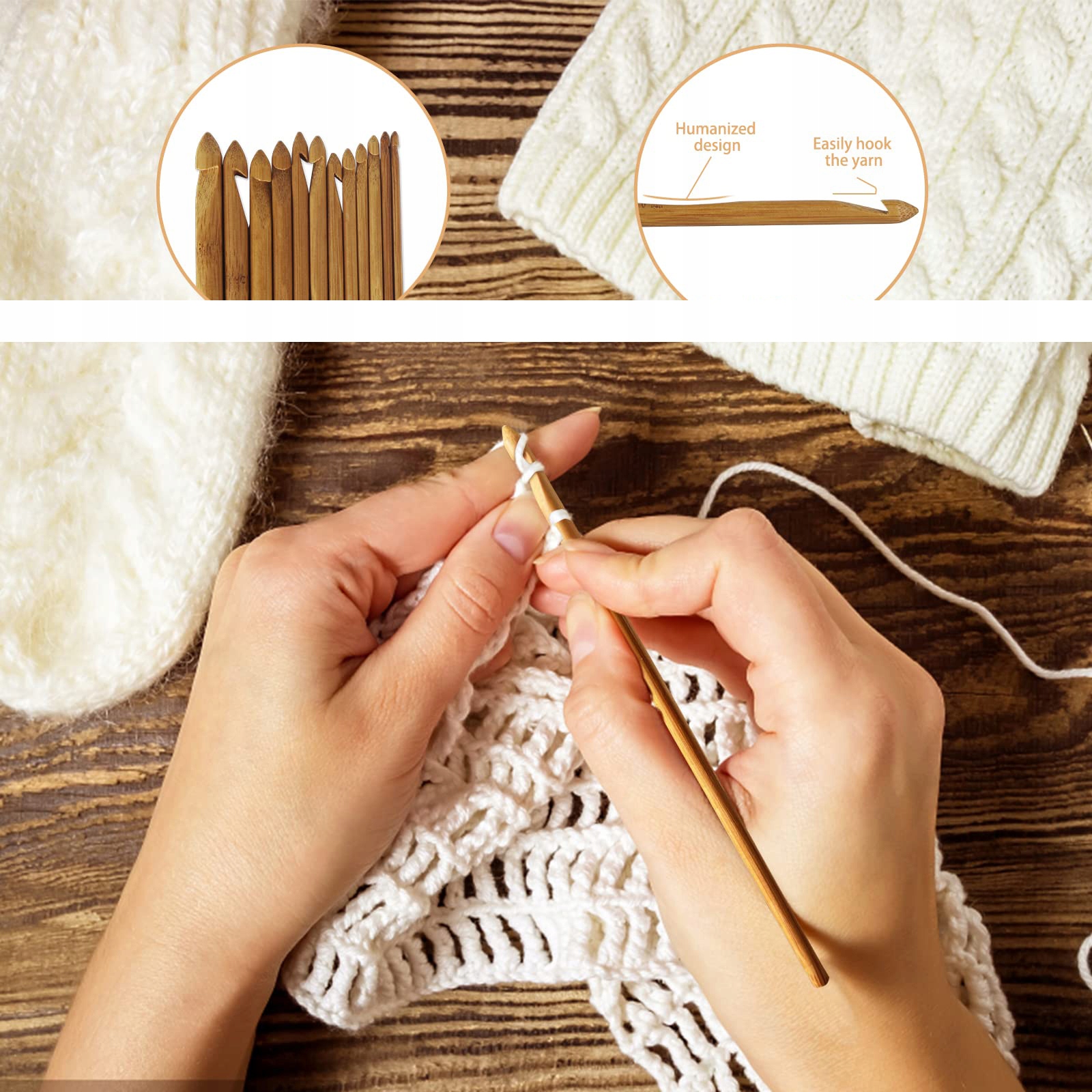 Матеріал преміум-класу: миска з вовняної пряжі та гачок для в’язання виготовлені з натурального бамбука з прозорим покриттям, гладкі та легкі, міцні та міцні.