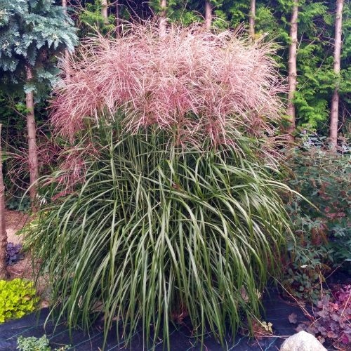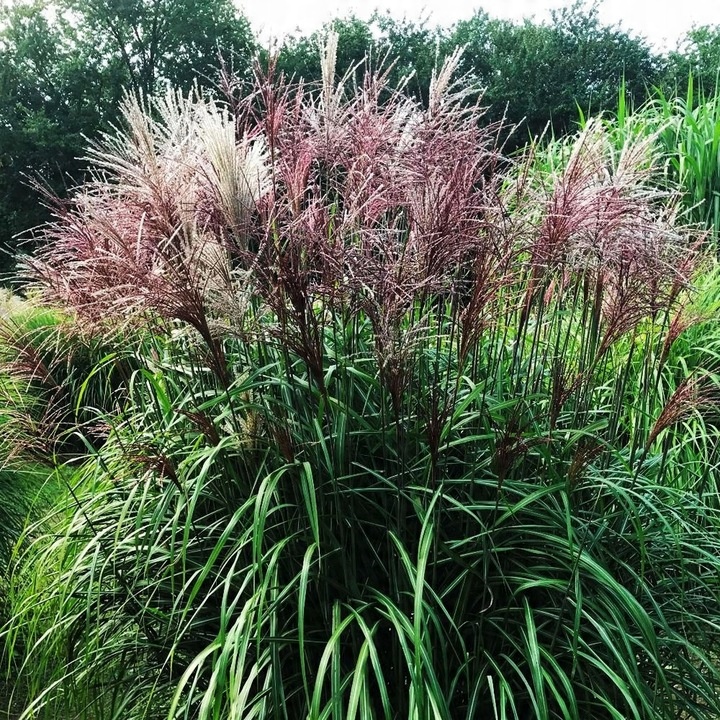 Також міскантус чудово поєднується з рослинами з ажурним листям, які надають їм сучасного вигляду: наприклад, з чорним бузком або березою.