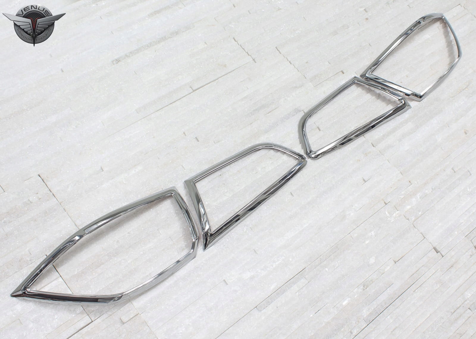 Виріб виготовлено з високоякісного хромованого ABS-пластику. У комплект входить набір з двох накладок на задні ліхтарі.