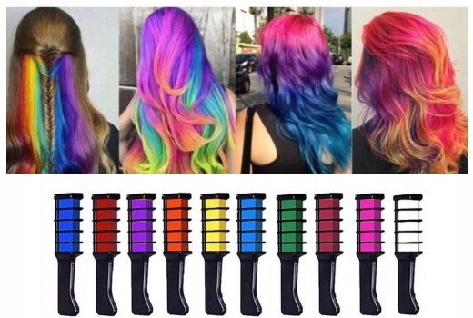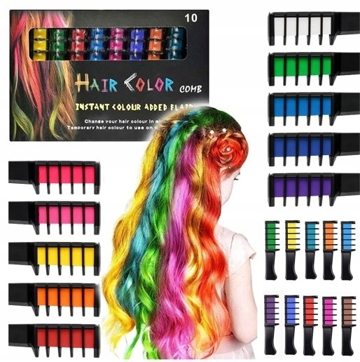 Крейда для фарбування волосся, фарбування мелірування, 10 кольорів. Гребінець з фарбувальною крейдою дозволяє пофарбувати волосся в обраний колір. Розчешіть їх гребінцем (чим більше, тим більша інтенсивність). Завдяки йому ви можете кожен день мати інший колір волосся, не витрачаючи цілий стан на перукарню; що важливіше, не пошкодивши волосся.