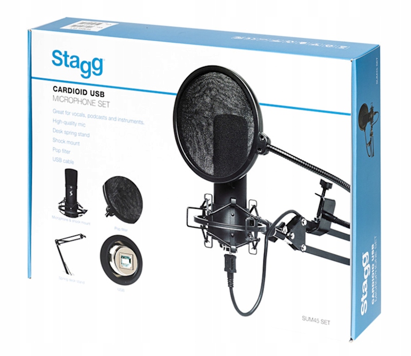 STAGG SUM45 SET - USB -ємний мікрофон з штативом, кошиком, попфільтрами та кабелем